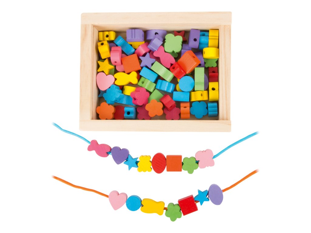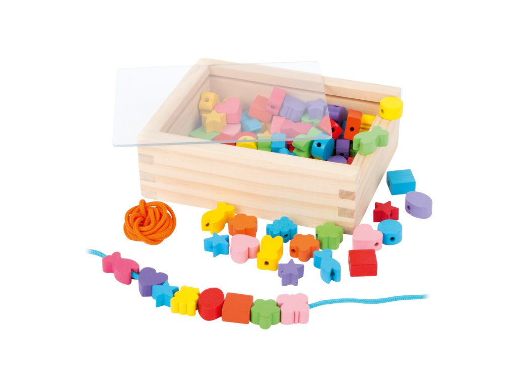 Ať už to jsou hvězdičky, srdíčka nebo květinky, tato dřevěná krabička plná navlékacích korálků ze 100% FSC® dřeva nadchne každého. Kreativitě se meze nekladou, takže si děti mohou vytvořit náramek nebo náhrdelník dle svých představ. Navlékání korálků na šňůrku trénuje koordinaci ruka-oko a jemnou motoriku. Jaký šperk si vyrobíte jako první? Hlavní vlastnosti: 81 barevných korálků2 šňůrky na navlékání100% FSC® dřevo Značka a certifikát FSC® (Forest Stewardship Council) zaručuje, že dřevo, ze kterého byl produkt vyroben, nebylo vytěženo nelegálně a pochází z lesů obhospodařovaných šetrným či přírodě blízkým způsobem, ve kterém jsou dodržovány přísné environmentální a sociální požadavky. Značka FSC® na výrobku znamená, že svým nákupem pomáháte chránit lesy a podporujete šetrné, odpovědné či přírodě blízké hospodaření, díky kterému jsou naše lesy stabilnější, zdravější, mají přirozenou druhovou skladbu a lépe odolávají negativním následkům klimatických změn.Doplňkové parametry