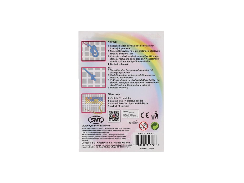 Vysívejte obrázek dle předlohy křížkovým stehem. Sada obsahuje plastovou destičku, papírovou předlohu, jehlu a 6 bavlnek.Rozměry balení 12 x 18 x 1 cm.