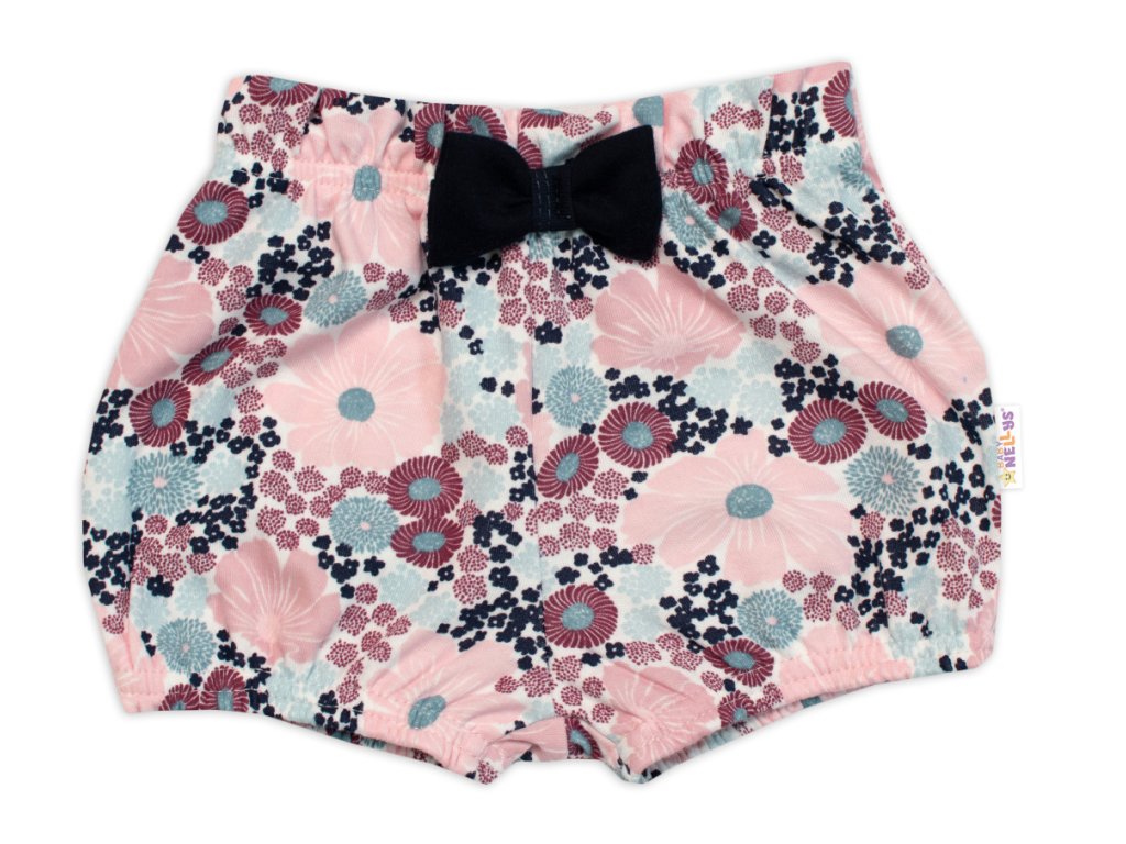 Kraťásky s mašličkou Baby Nellys, Blooming Flowers, bavlna, růžové