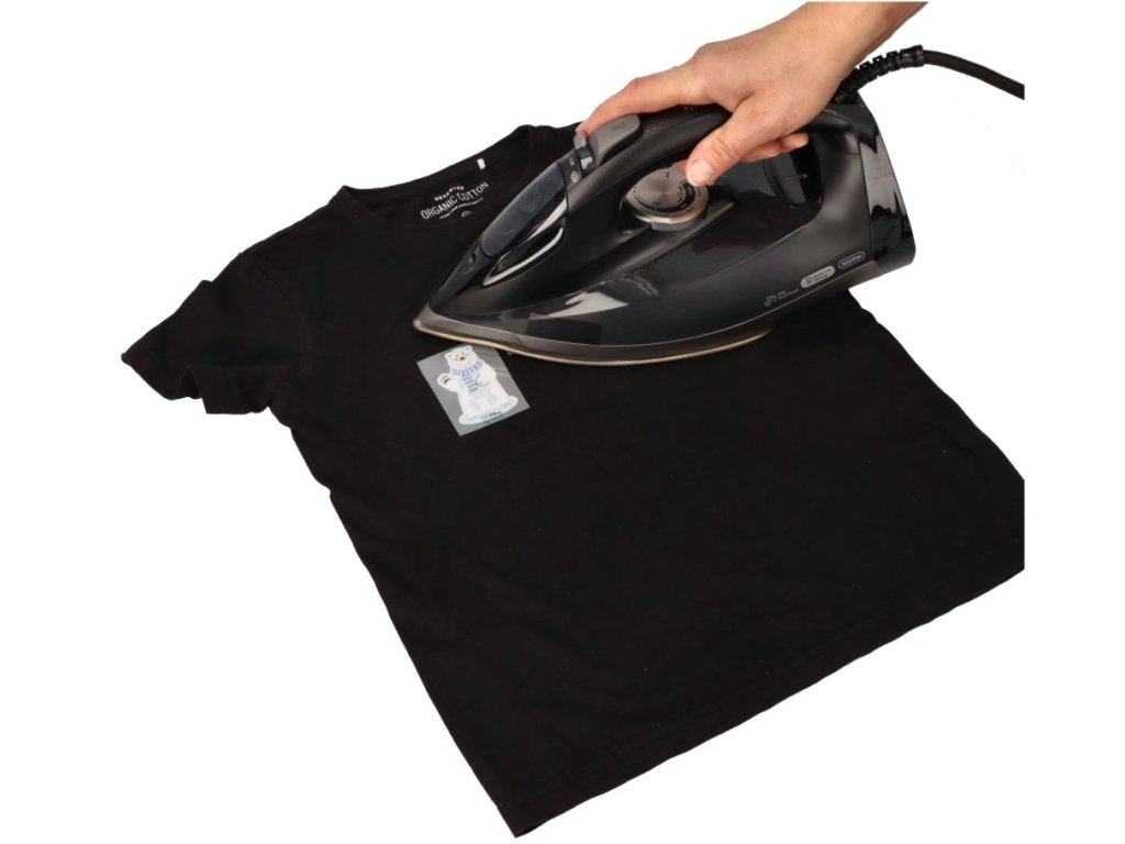 1. Skvrnu odstřihněte (nejlépe je kolem ní ponechat malou fólii, aby ji bylo po žehlení snazší odtrhnout).