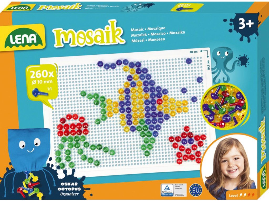 Skládej a vytvářej svůj vlastní svět plný krásných obrázků do mřížkované podložky. Poskládej si akvarium nebo si vytvoř třeba letadlo. Je to jen na tobě. Tvoř znovu a znovu díky 260 kusům plastových hlaviček o průměru 1,5 cm, které na desce umístíš přesně na místo, kam se ti bude hodit!Rozměr krabice: 33 x 24 x 3,5 cm