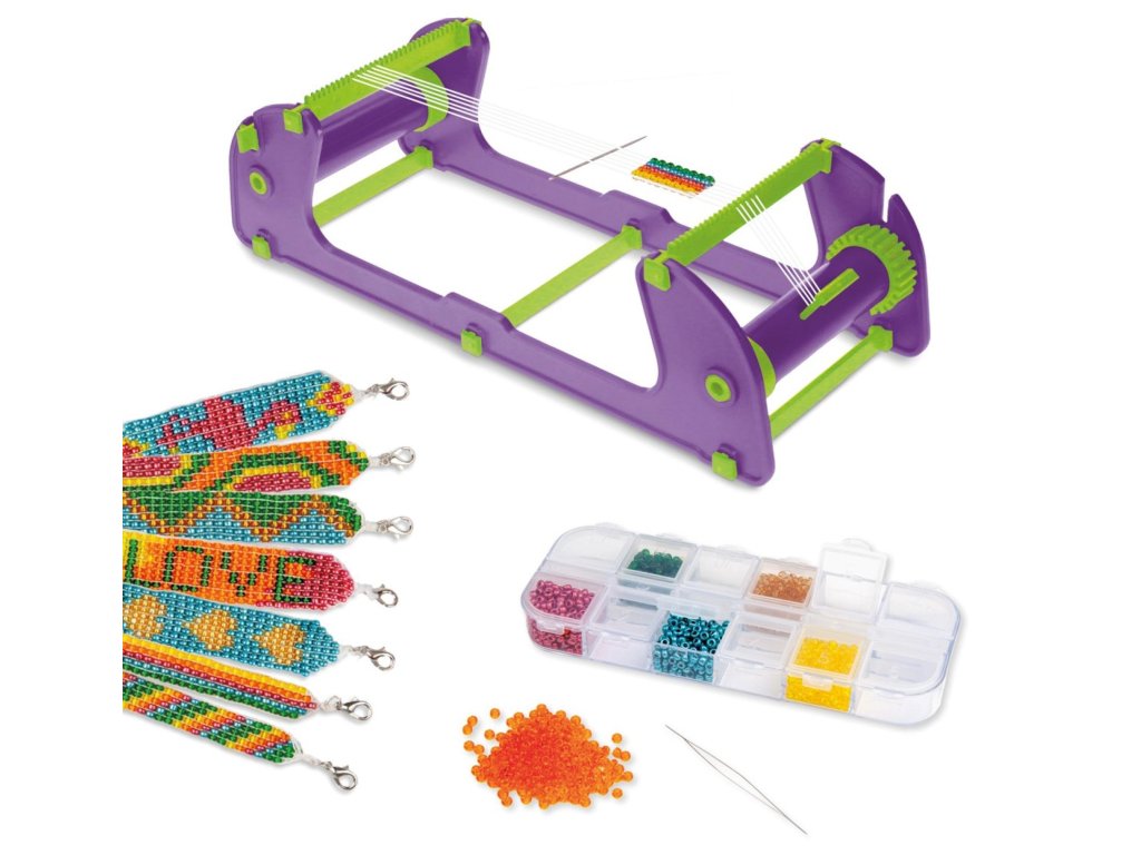Perličková sada na výrobu cool náramků ze skleněných korálků. Obsahuje rám na tkaní z korálků, přízi, jehlu s velkým očkem, kvalitní korálky v 6 různých barvách a zapínání. Vytvoř si náramek podle tvých představ sobě nebo jako originální dárek!Rozměr balení: 28 x 24 x 5,5 cm