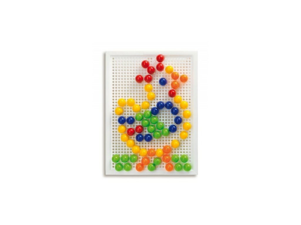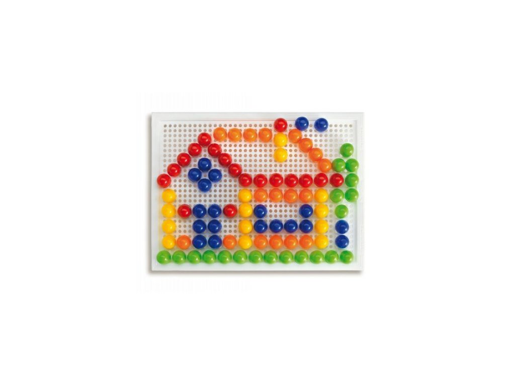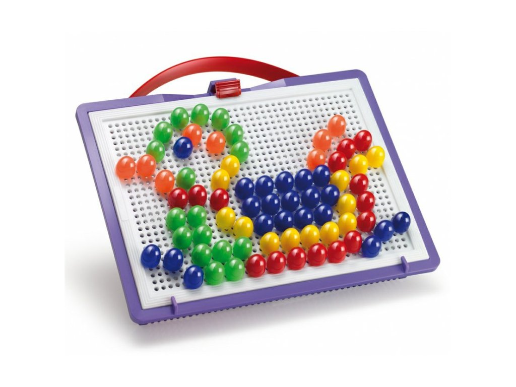 Mozaiky u dětí rozvíjejí jemnou motoriku, tvořivost a fantazii. Skládají se z kufříku, perforované hrací desky a barevných kolíčků s hlavičkami různých barev, průměrů a tvarů. Pomocí těchto kolíčků, které se zasazují do otvorů v hrací desce, tvoří děti různé obrázky nebo vzory. Po skončení hry lze vše uložit do kufříku, jehož víko po zajištění pojistkou tvoří sama hrací deska. Vyrobeno z plastů špičkové kvality. Hlavní vlastnosti: rozvíjí jemnou motoriku, tvořivost a fantaziiobsahuje 100 knoflíků o průměru 15 mmDoplňkové parametry
