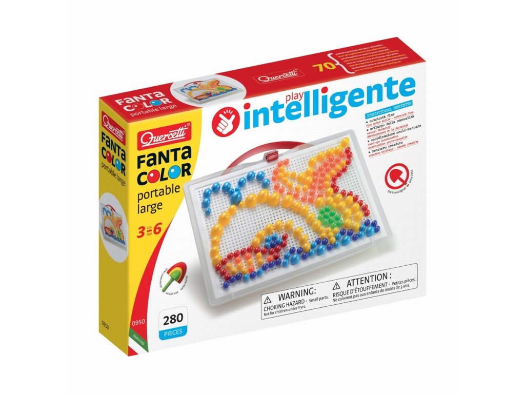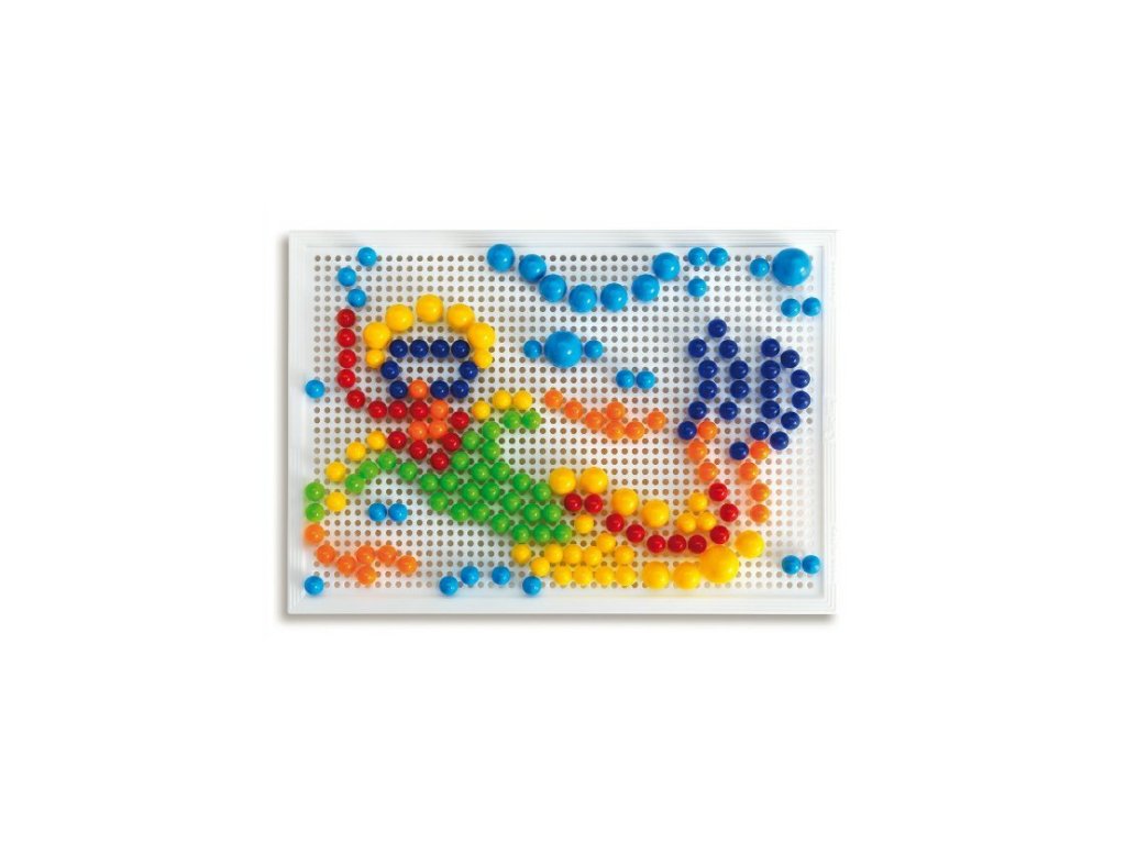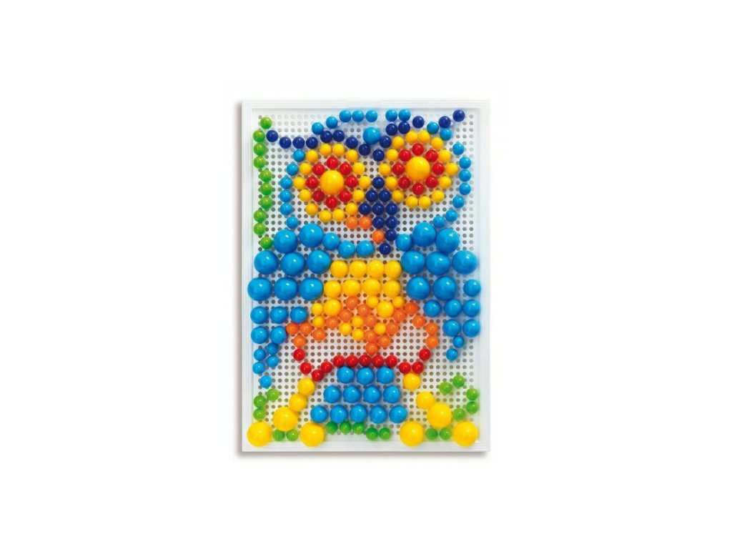 Mozaiky u dětí rozvíjejí jemnou motoriku, tvořivost a fantazii. Skládají se z kufříku, perforované hrací desky a barevných kolíčků s hlavičkami různých barev, průměrů a tvarů. Pomocí těchto kolíčků, které se zasazují do otvorů v hrací desce, tvoří děti různé obrázky nebo vzory. Po skončení hry lze vše uložit do kufříku, jehož víko po zajištění pojistkou tvoří sama hrací deska. Vyrobeno z plastů špičkové kvality. Hlavní vlastnosti: rozvíjí jemnou motoriku, tvořivost a fantaziiobsahuje 280 knoflíků o průměru 10, 15, 20 mmDoplňkové parametry