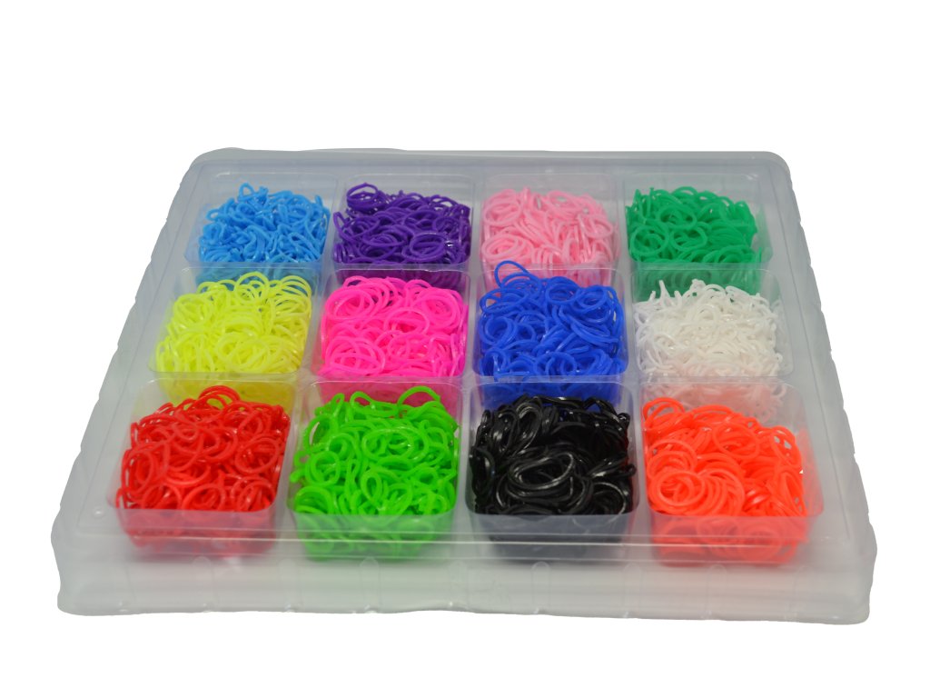 Kreativní sada na výrobu náramků Loom Bands. Vytvořte si vlastní šperky a ozdoby z gumiček, ozdobte sebe a potěšte i kamarády. Sada v krabičce obsahuje 2400 ks barevných gumiček. Pletací stav není součástí baleníDoplňkové parametry