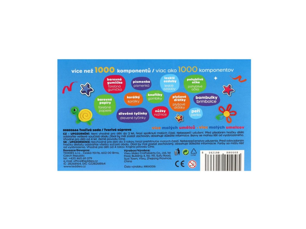 Více než 1000 různorodých komponentů pro nekonečné hodiny zábavného tvoření. Vše je uloženo v praktickém uzavíratelném plastovém boxu s víkem a uchem, takže se nic neztratí a snadno se uklízí i přenáší.Doplňkové parametry