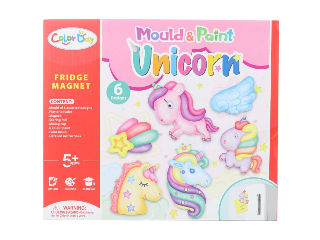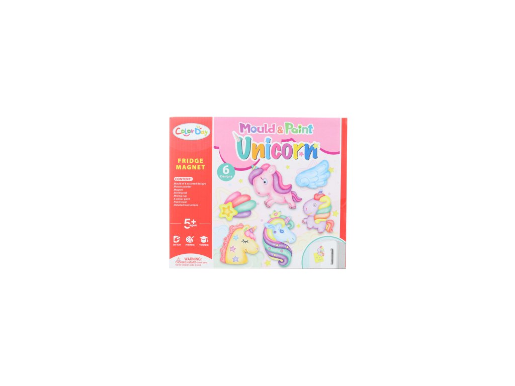 Balení obsahuje sádru, plastovou misku, plastovu formu s 6 různými motivy, 6 barviček na vybarvení, štěteček, magnety - můžete vytvořit magnetku a návod na přípravu. Rozměr balení 23 x 27 x 5,5 cm. Věk 5+Doplňkové parametry