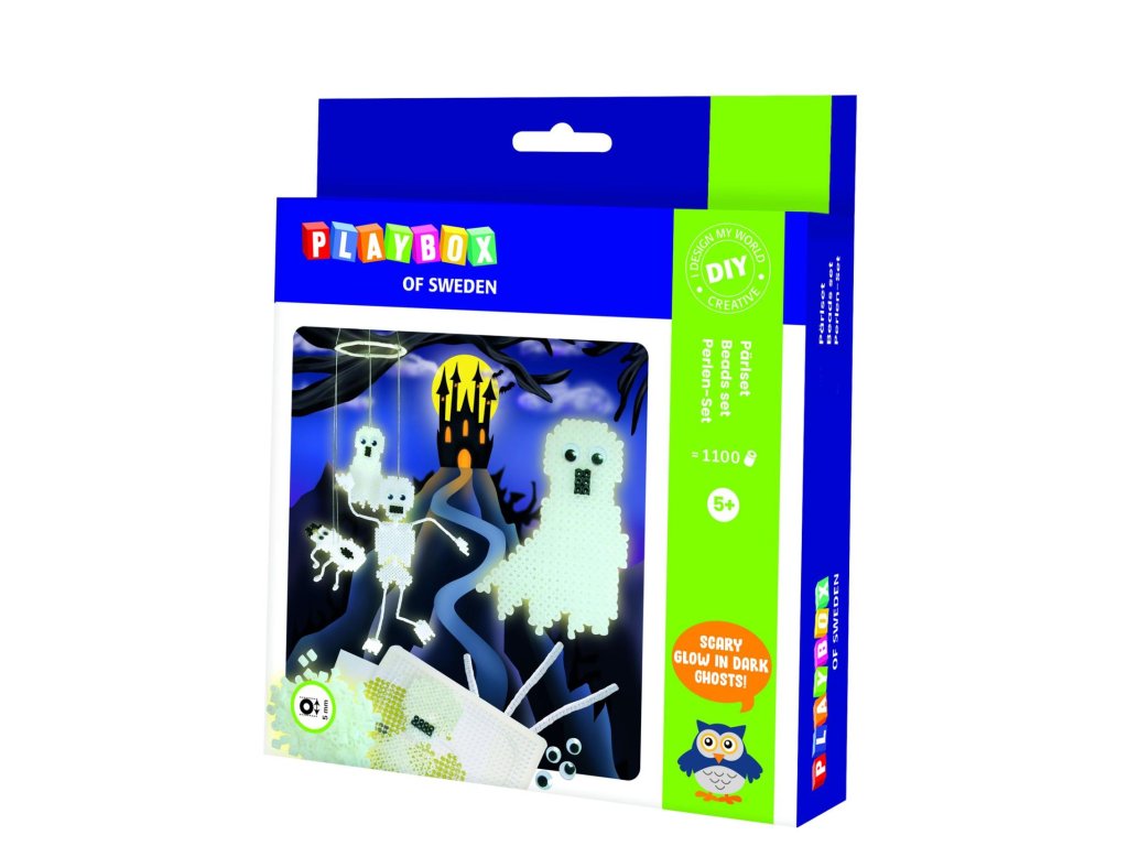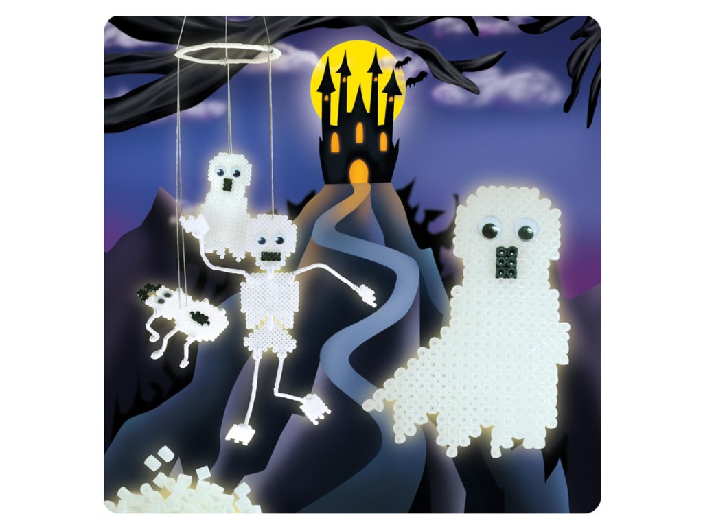 Zažehlovací korálky Duchové 1100ks plast v krabici 18x21x4cm