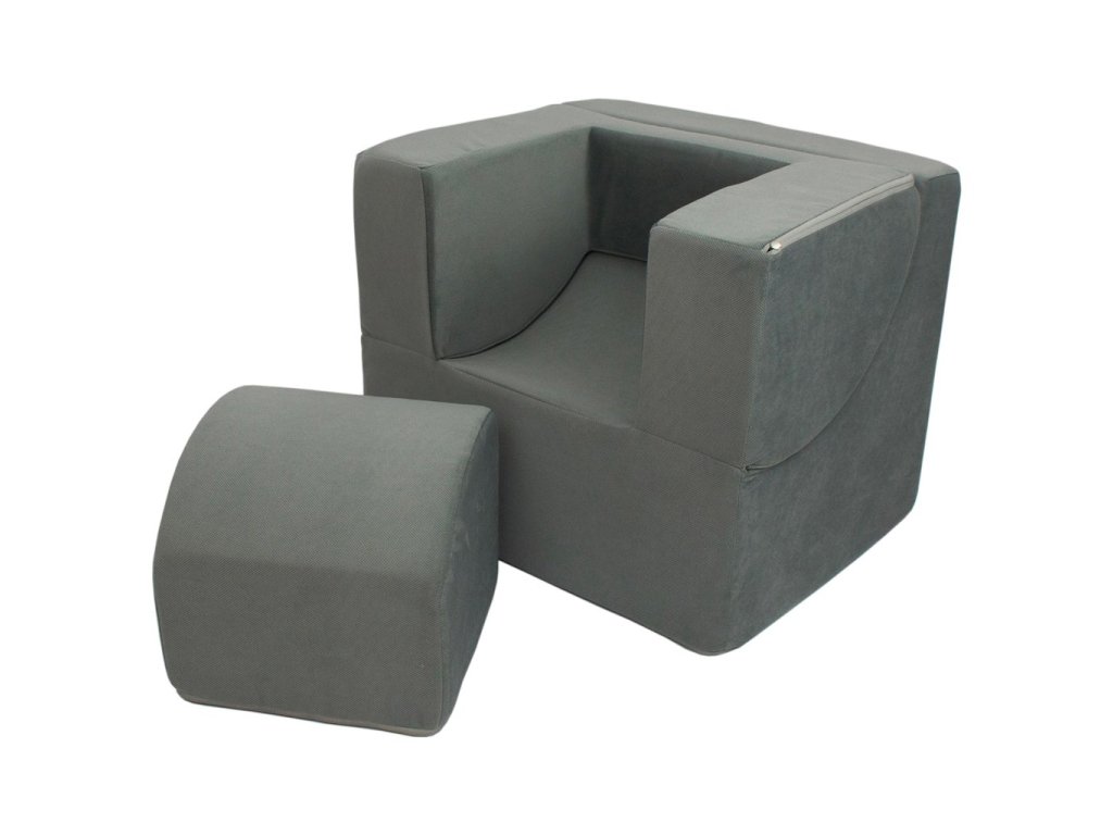 Sedačka se velmi rychle stane oblíbeným místem vašeho dítěte k odpočinku nebo hraní. A díky svému všestrannému a elegantnímu stylu se snadno vejde do interiéru každé místnosti. Skládá se ze dvou částí. Z kostky a křesílka, které má vyklápěcí opěrku rukou. Po sklopení opěrky rukou, stačí už jen do středu doplnit kostku a z křesílka je sedačka-lenoška.