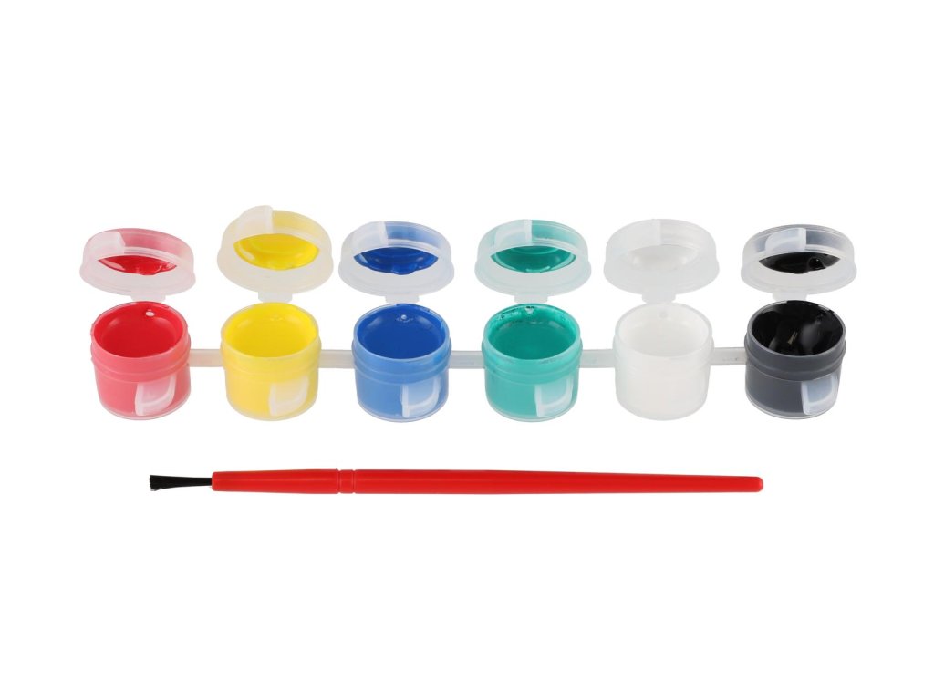 Akrylové barvy 12ks se štětcem i na keramiku,sklo,kameny na kartě 11x26,5cm