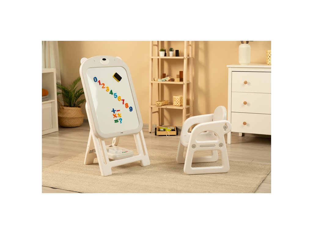 Dětská magnetická tabule se stolečkem.Naučit se psát a kreslit bude nyní snazší díky vzdělávací tabuli. Součástí magnetické tabule vybavené sadou fixů a barevných magnetů je i židle, která umožní odpočinout unaveným nohám malého umělce. Vzhled sady osloví každého milovníka medvědů.