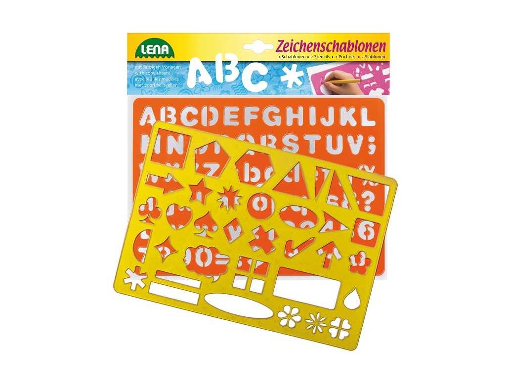 Kreslící šablonky s motivem písmenek a symbolů. Balení obsahuje 2x šablonku o velikosti 27x23cm.