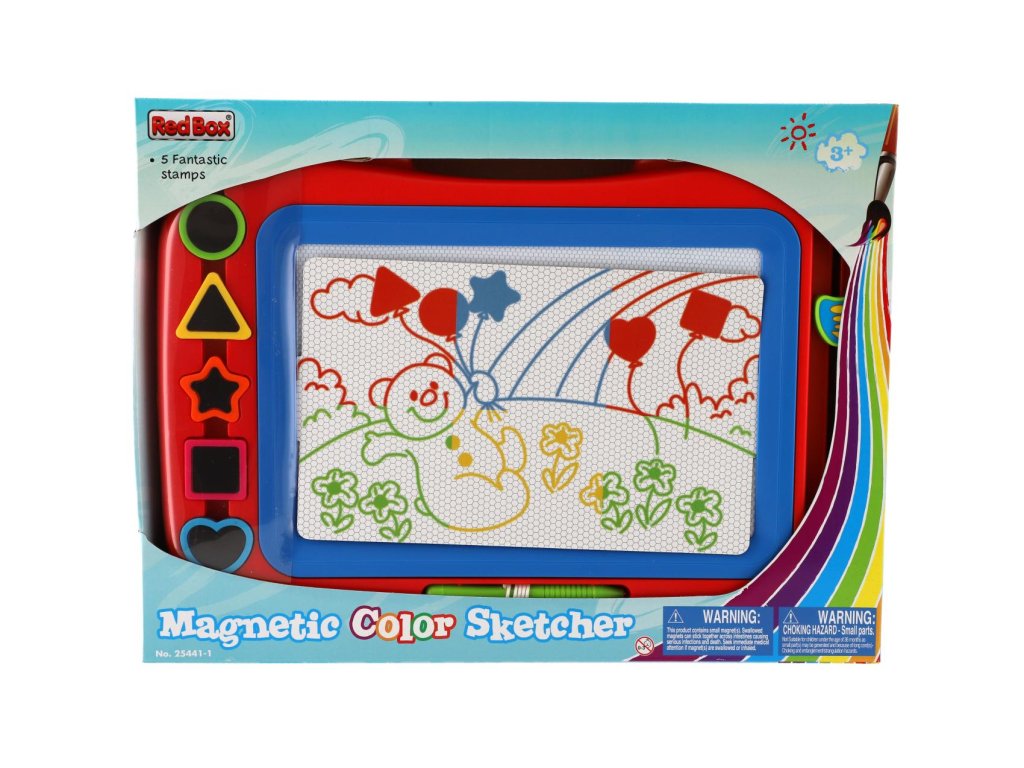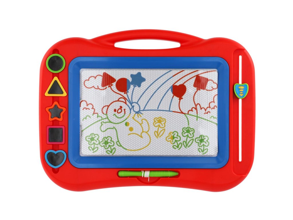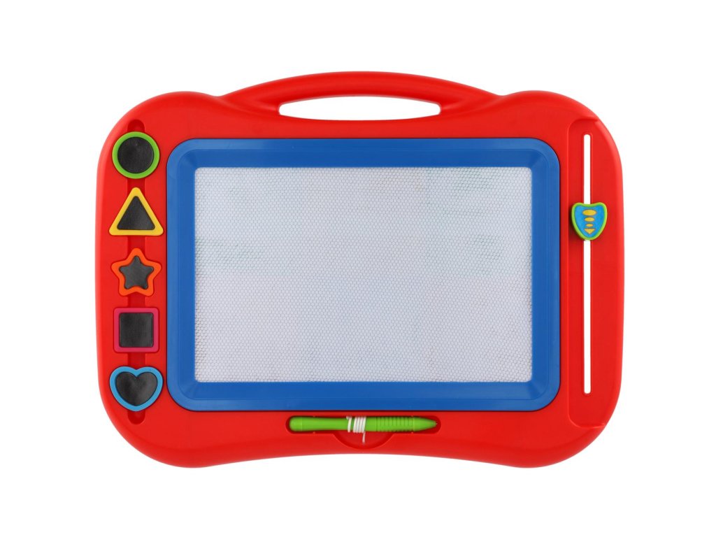 Magnetická mazací tabulka v krásném barevném provedení je kreativní pomůcka pro kreslení. A pokud se dětem obrázek nebude líbit, v mžiku ho smažou pomocí mazací lišty. Děti si zábavnou formou zlepšují motoriku a rozvíjí si kreativitu. Součástí balení je tužka na tabulku a pět razítek. Vhodné od 3 let.Doplňkové parametry