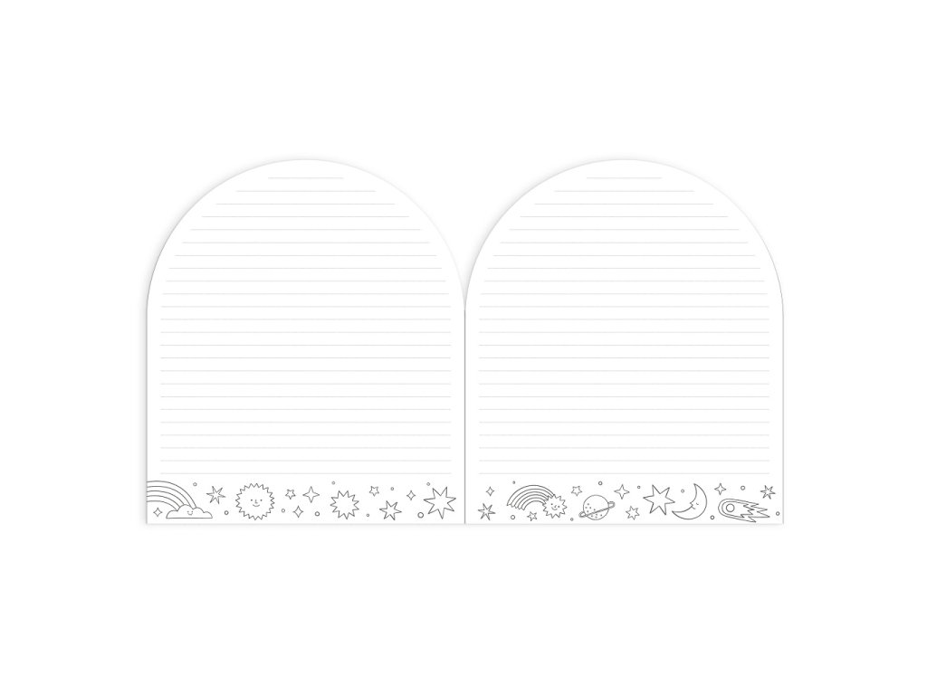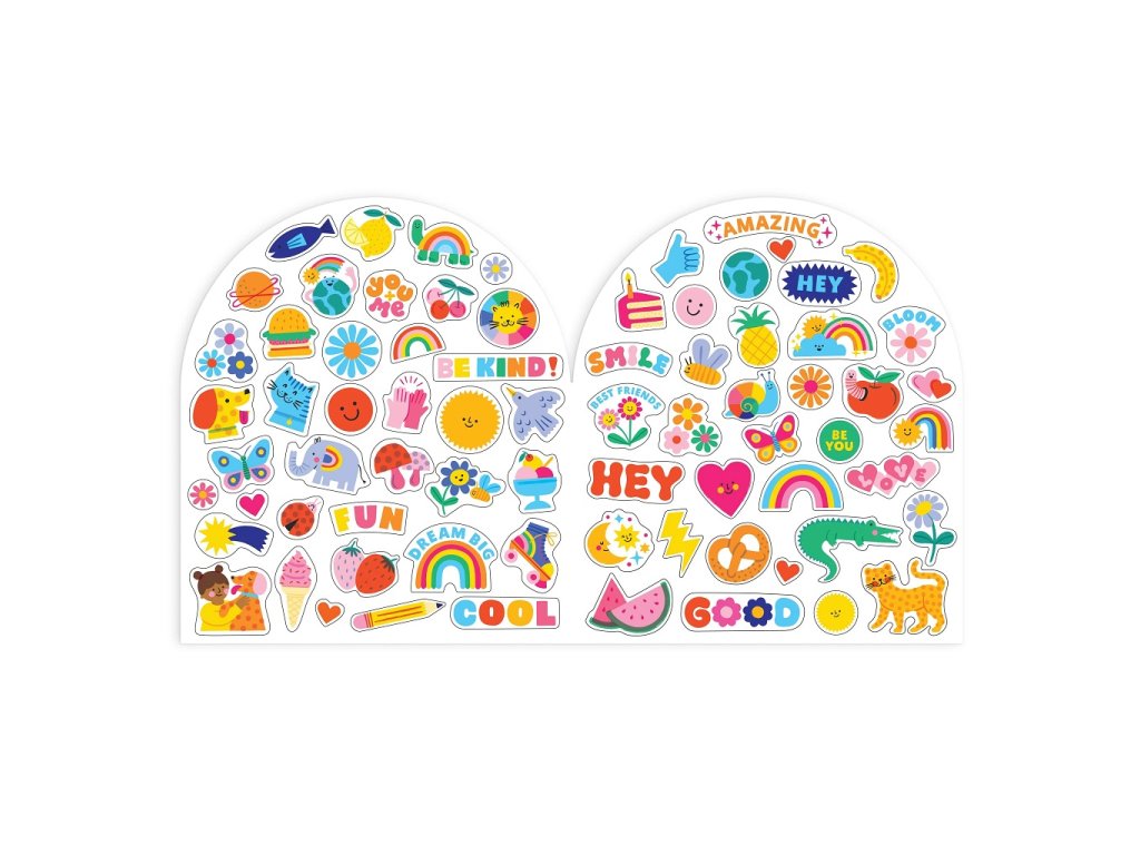 Tento kreativní set Vám v batůžku nesmí chybět! K dispozici jsou stránky pro zápis a skicování, 2 archy se samolepkami, omalovánky a samozřejmě spousta zábavy! Přiložená vícebarevná tužka umožňuje vybarvování, kreslení a psaní v jakékoli barvě duhy!
