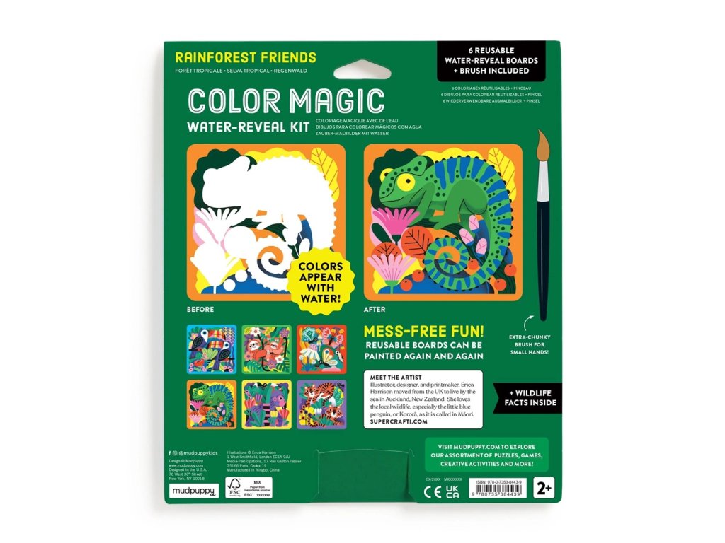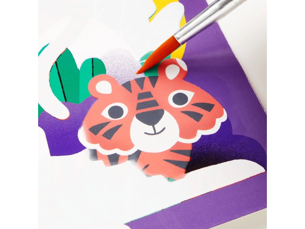 Rozvíjejte fantazii a kreativitu svého dítěte a vydejte se na dobrodružnou cestu do deštného pralesa plného zvířátek! Sledujte, jak zvířata ožívají před Vašima očima díky kouzlu čisté vody. Každý list obsahuje kresby oblíbených zvířat a dalších výjevů z džungle, které čekají na odhalení. Jednoduše namočte přiložený štětec do vody a přejeďte jím po bílých plochách, abyste objevili zářivé barvy a propracované detaily obrázků. Malování vodou je perfektním dárkem pro děti, které milují zvířecí dobrodružství a umělecké aktivity. Podporuje smyslové poznávání, rozvoj jemné motoriky a fantazijní hry a zároveň děti potěší krásou přírody. Přesné pohyby potřebné k nanášení vody pomáhají dětem rozvíjet koordinaci ruka-oko. Tyto dovednosti jsou přípravou na psaní a kreslení. Dokončení procesu malování vyžaduje trpělivost a soustředění. Malování vodou je interaktivní, zábavné a poskytuje dětem zážitky při hře bez obrazovek. Tato omalovánka byla vytvořena podle námětu Ericy Harrison, která žije na Novém Zélandu a miluje tamější divokou přírodu. Vyrobeno převážně z papíru s certifikací FSC® a potištěno rostlinnými barvami. Všechny produkty splňují bezpečnostní předpisy CPSIA, ASTM a CE.