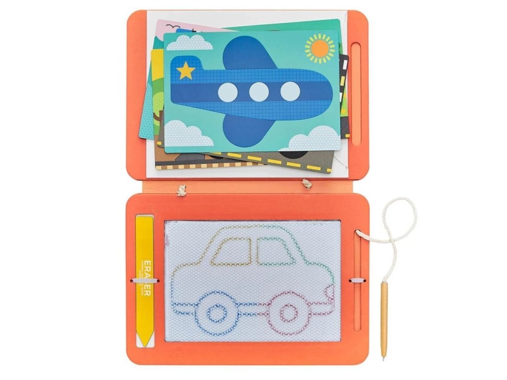 Rozprouděte představivost dětí s touto magnetickou kreslící tabulkou! Perfektní kreativní hračka domů i na cesty, má magickou tužku, která je připevněna k tabulce provázkemDále zde najdete mízítko a 5 ks předlohy pro kreslení