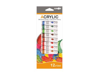 Akrylové barvy 12ml 12ks i na keramiku,sklo,kameny v krabičce 11x26cm