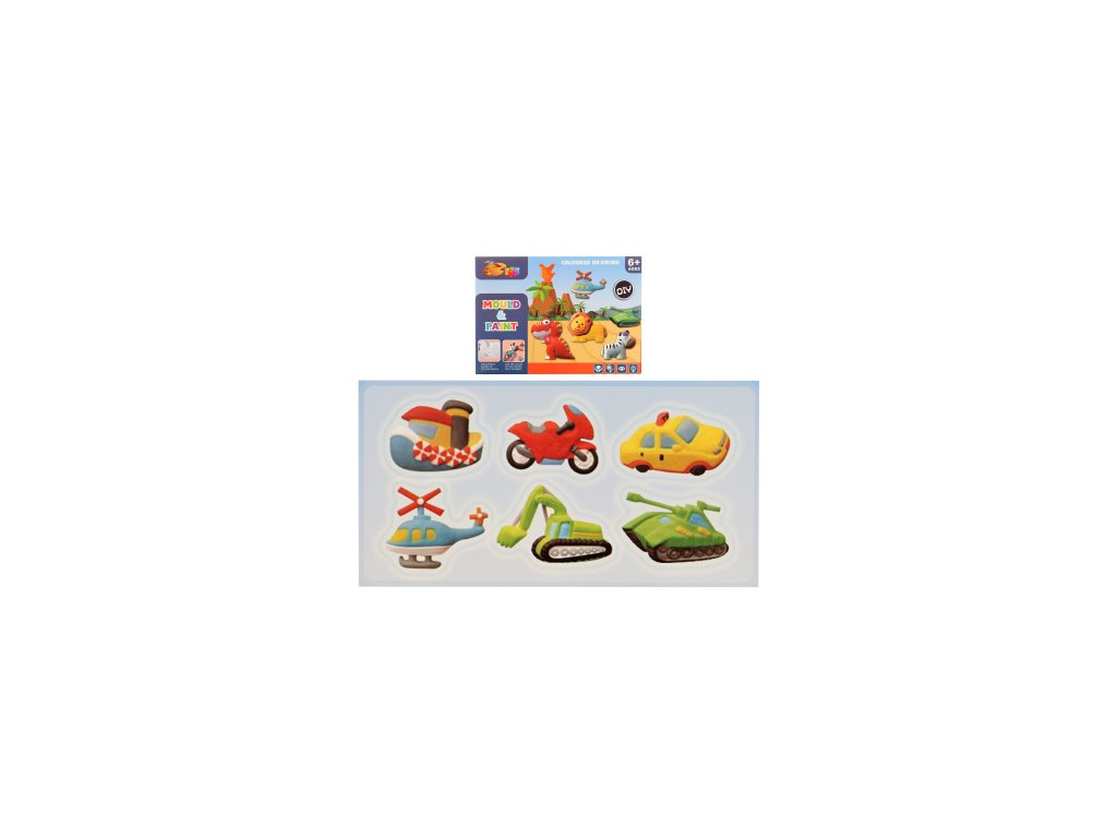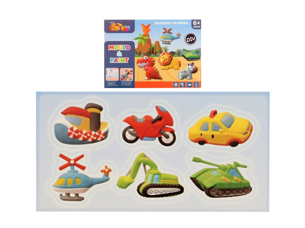 Balení obsahuje sádru, plastový kelímek, plastovou misku, plastovu formu s 6 různými motivy, 8 barviček k vybarvení, 2 štětečky,plastovou lžičku a dřevěnou špachtličku. Rozměry balení cca 27 x 19 x 5 cm. Věk 6+Doplňkové parametry
