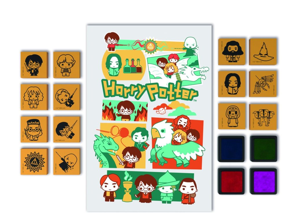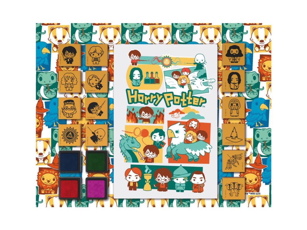 Zábavná razítka s blokem Harry Potter pěnová 14ks s 4 ks poduškami v krabičce