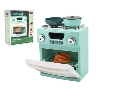 Kuchyňský sporák plast s doplňky na baterie se světlem se zvukem v krabici 22x28x11,5cm 18m+