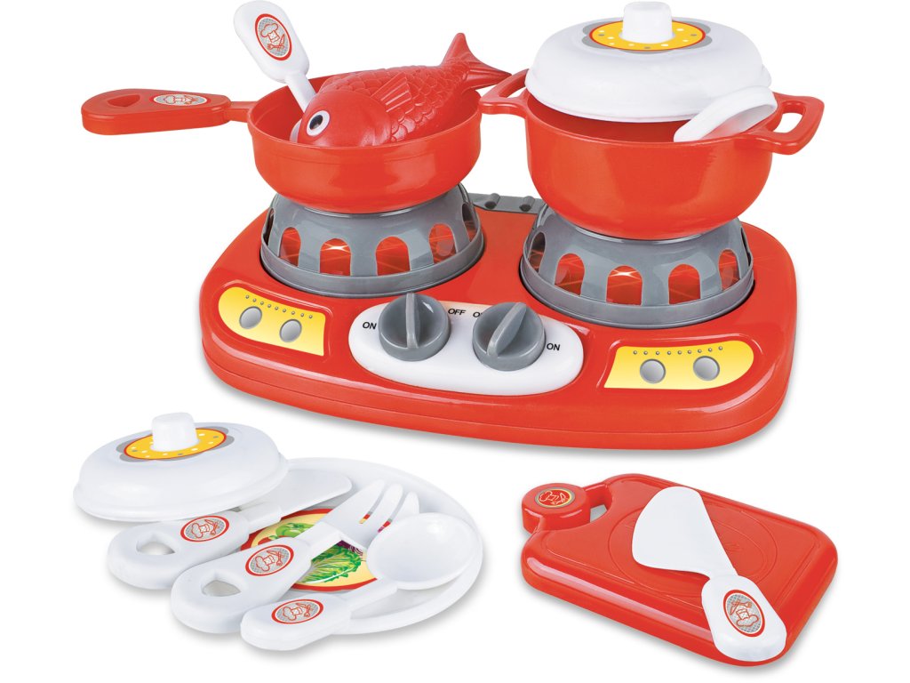MOJE DOMÁCNOST – Plynový dvouvařič Interaktivní plynový dvouvařič je skvělá hračka s tlačítky pro zvukové a světelné efekty, která děti baví a zároveň rozvíjí jejich představivost a jemnou motoriku. Instalace baterií: Vypněte hračku stiskem tlačítka. Odšroubujte kryt zásobníku na baterie (šroubovák není součástí balení). Vyjměte staré baterie a vložte nové. Zásobník pevně uzavřete a zašroubujte kryt. Informace o bateriích: Hračka vyžaduje 2× baterie AA (1,5 V), které nejsou součástí balení. Instalaci a výměnu baterií smí provádět pouze dospělá osoba. Dodržujte správnou polaritu a používejte stejné typy baterií. Nekombinujte různé značky, typy ani staré a nové baterie. Nepoužívejte dobíjecí baterie, pokud nejsou určeny k nabíjení. Vyměňujte všechny baterie současně. Při delším nepoužívání hračky baterie vyjměte. Baterie uchovávejte na bezpečném místě mimo dosah dětí, nevystavujte je ohni ani přímému slunečnímu záření. V případě spolknutí baterií okamžitě vyhledejte lékařskou pomoc. Upozornění: Hračka není vhodná pro děti do 3 let kvůli riziku spolknutí malých částí. Před použitím odstraňte obal, aby nedošlo k nebezpečí udušení. Před hraním zkontrolujte, zda je hračka včetně příslušenství v pořádku. V případě závady hračku nepoužívejte. Obal uschovejte pro případnou potřebu. Barvy a detaily výrobku se mohou lišit od vyobrazení na obalu.Doplňkové parametry