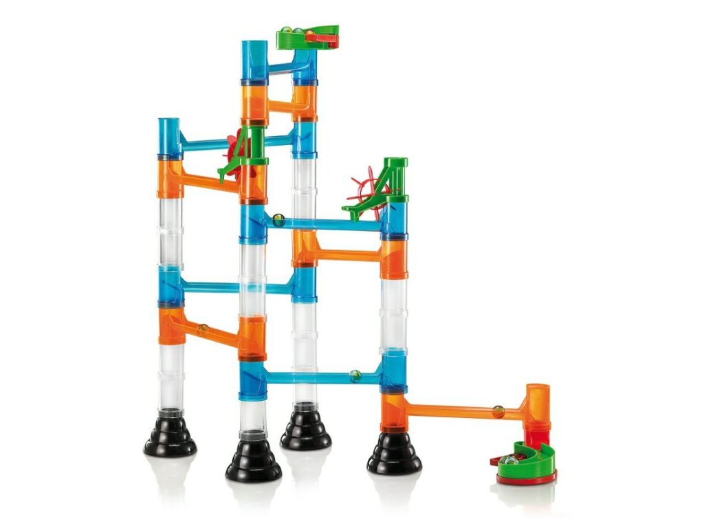 Vytvořte si díky naší skvělé stavebnici svou vlastní kuličkovou dráhu! Sestavte modely vyobrazené na krabici nebo zkuste vymyslet vlastní návrhy. Vzájemně do sebe zapadající skluzavky, můstky, sloupky i lopatková kola vám nabízejí nekonečnou škálu možností a přinášejí spoustu zábavy na dlouhou dobu.