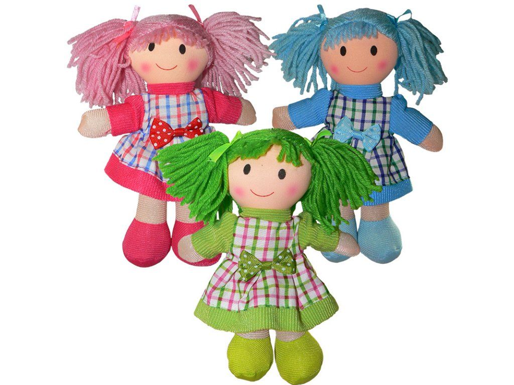 Velmi krásná hadrová panenka pro holky vyrobená z látky, nebo různých textílií a její ručičky i nožičky se libovolně hýbou. Panenka je vysoká 20cm. Hračka je krásně měkká, jemná a výborně se hodí na každodenní hraní. Díky jejímu měkkému hadrovému tělíčku, mohou i spát v noci v postýlce. - Věk 3+