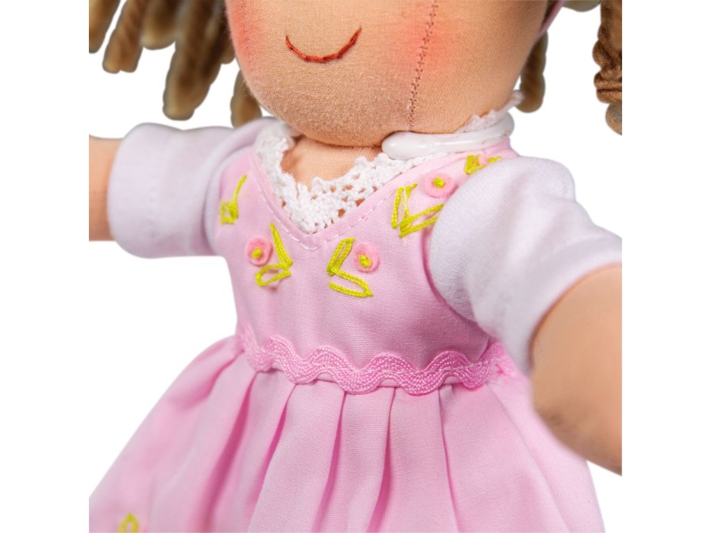 Seznamte se s veselou Rose, barevnou a tradiční panenkou, s níž se vaše dítě rádo pomazlí. Rose nosí kvalitní oblečení v hezkém barevném provedení a těší se na společné přátelství s dětmiOblečení je možné svlékat a oblékat panence podle potřeby. Hlavní vlastnosti: bezpečné měkké tělíčkohra s panenkou rozvíjí jemnou motoriku a schopnost pomáhat, pečovatk panence Bigjigs Toys lze dokupovat oblečení v příslušné velikostivhodné již od narozeníodpovídá současným evropským bezpečnostním normám