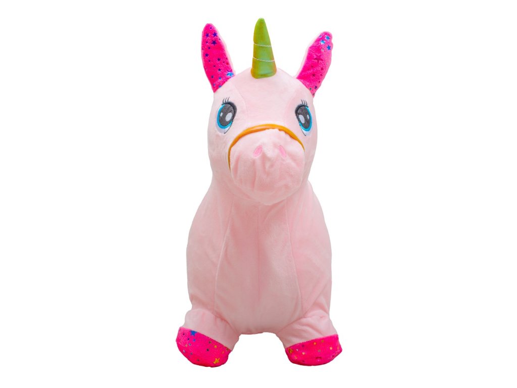 Plyšové nafukovací hopsadlo je zárukou dlouhotrvající zábavy pro Vaše dítě. Hopsadlo se pohodlně drží za uši a obsahuje zvukový modul, který po zmáčknutí mezi ušima vydává realistický zvuk koníka. Je potaženo plyšovým materiálem, který je příjemný na dotek a neklouže. Součástí balení je pumpička k pohodlnému nafouknutí a baterie (3xLR44).