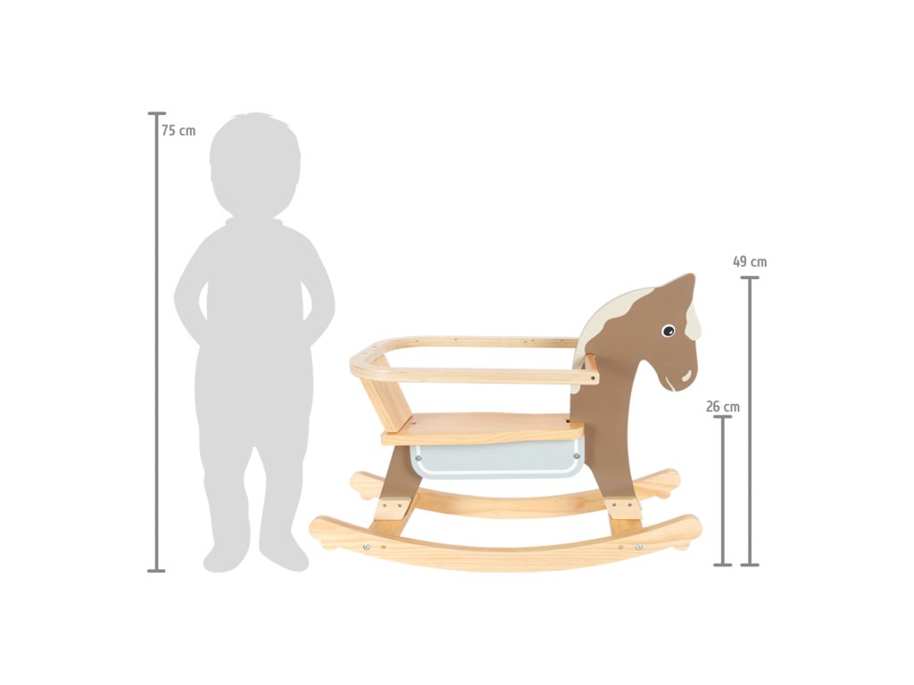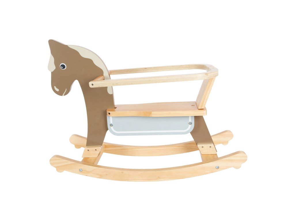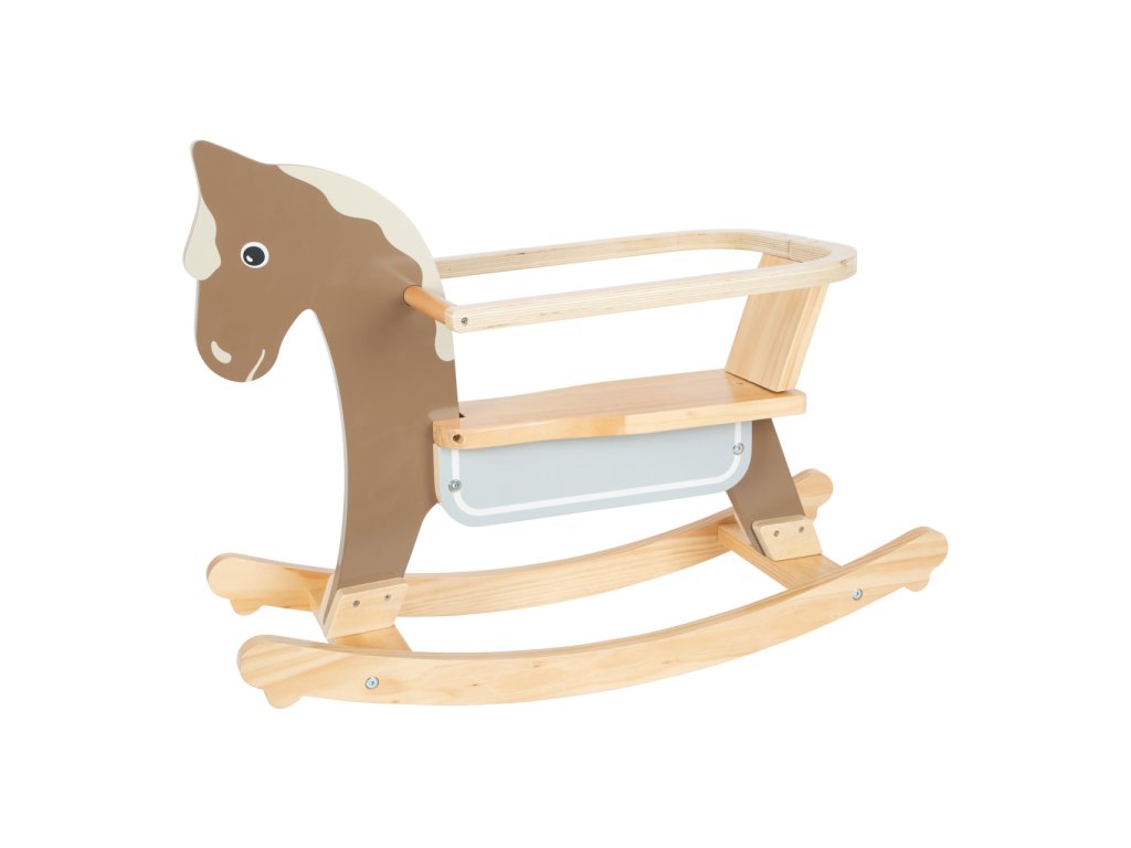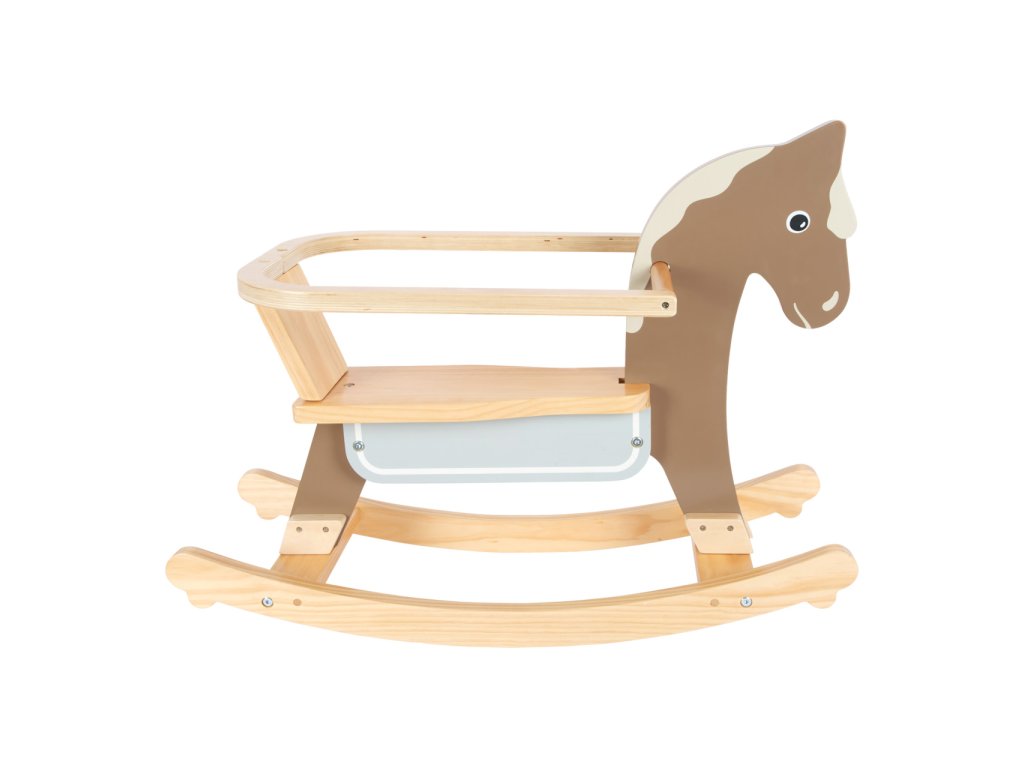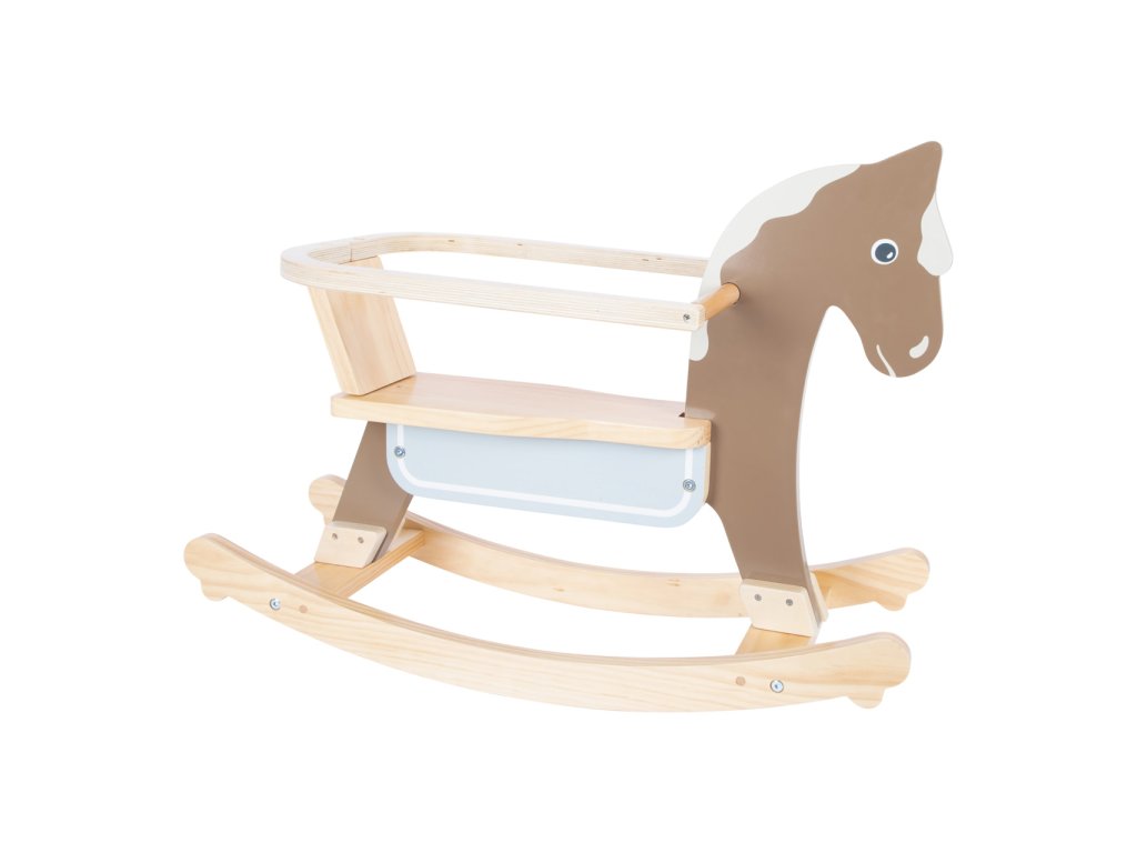 Vzhůru do sedel a cvalem kupředu! Houpací koník může dětem pomoci zesílit, rozvíjet koordinaci pohybů a rovnováhu. Pro zajištění maximální bezpečnosti je vybaven dorazy a opěradlem s hrazením, které lze snadno odejmout, jakmile dítě povyroste. Hračka je vyrobena z kombinace odolné překližky a masivního dřeva. Dává přitom vyniknout přírodním odstínům, a zútulní tak každý dětský pokojíček. Výrobek vyžaduje montáž, dodáváno s detailním návodem k sestavení.