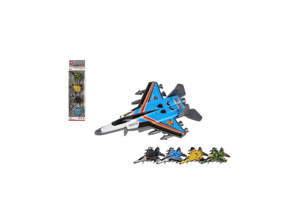 Letadlo stíhačka 4 ks kov/plast 10 cm na zpětné natažení mix barev v krabičce (1 ks)
