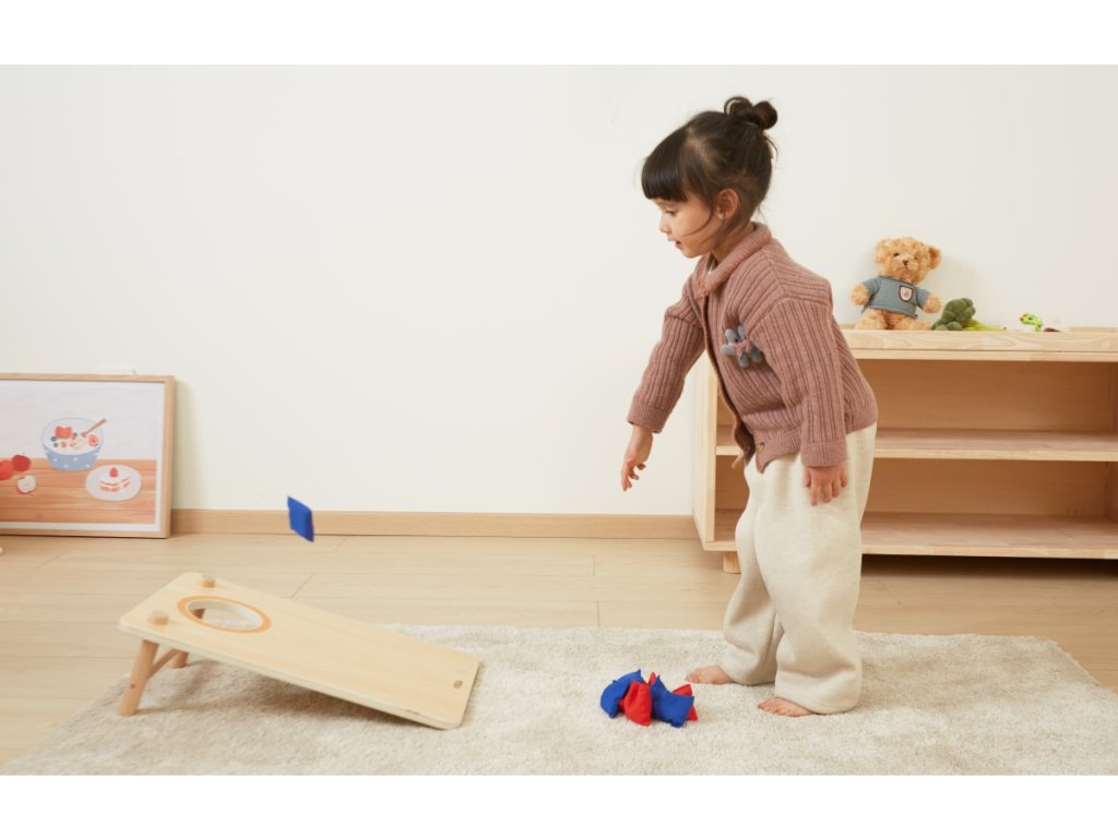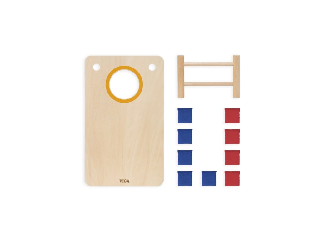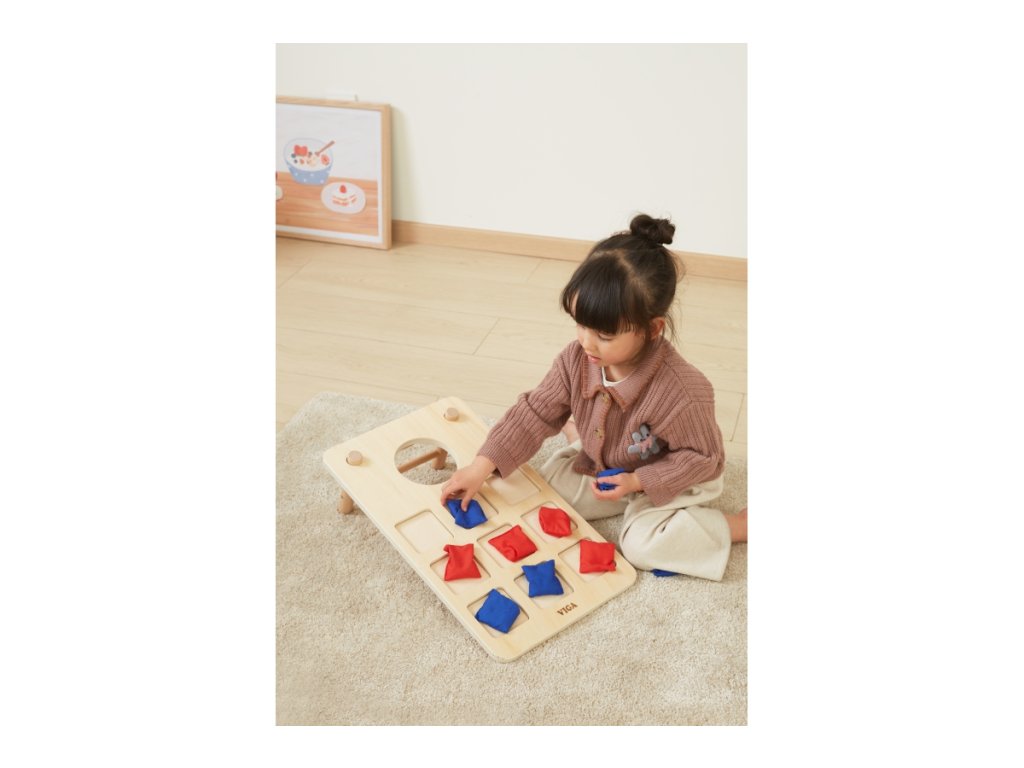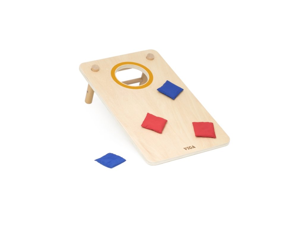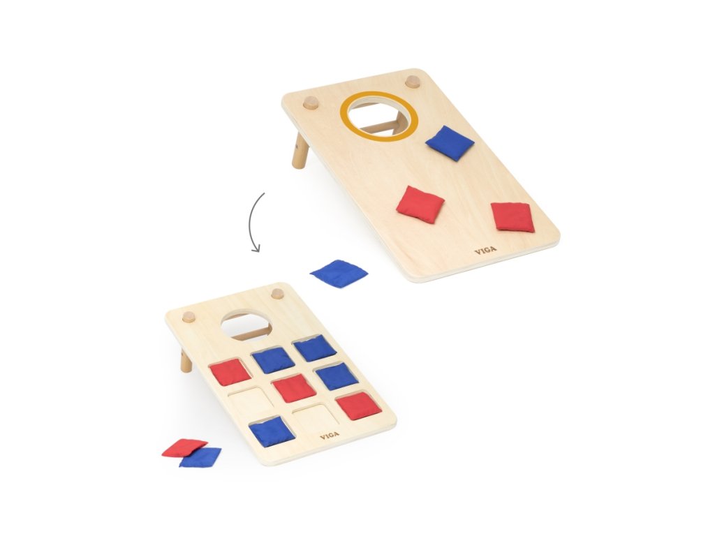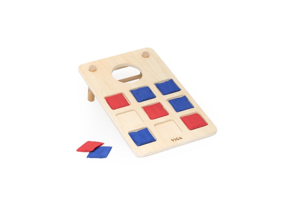 Velká dřevěná hra piškvorky. Děti pokládají sáčky ve své barvě na dřevěnou základnu. Rozměry hry 49,5x30x15,5 cm. Rozměry balení 31x55x5 cm. Věk 3+Doplňkové parametry