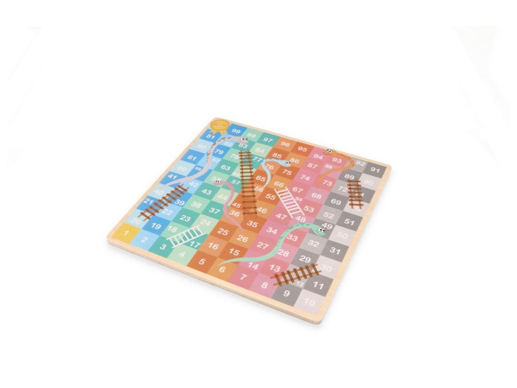 Druhou hrou je tradiční hra z Velké Británie „Snakes and Ladders". Hru může hrát maximálně 6 lidí. Umístěte figurky na pole s číslem 1 a poté se posouvejte na cílovou čáru v postupně očíslovaných polích. podle počtu bodů udávaných kostkou, ale pozor v této hře můžete snadno vylézt nahoru, ale také spadnout o mnoho polí dolů, a to vše díky žebříkům - ty nás vynesou nahoru, neboli hadům, po kterých bohužel kloužeme dolů.