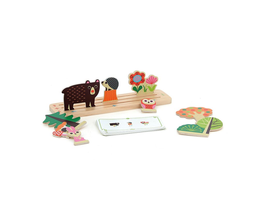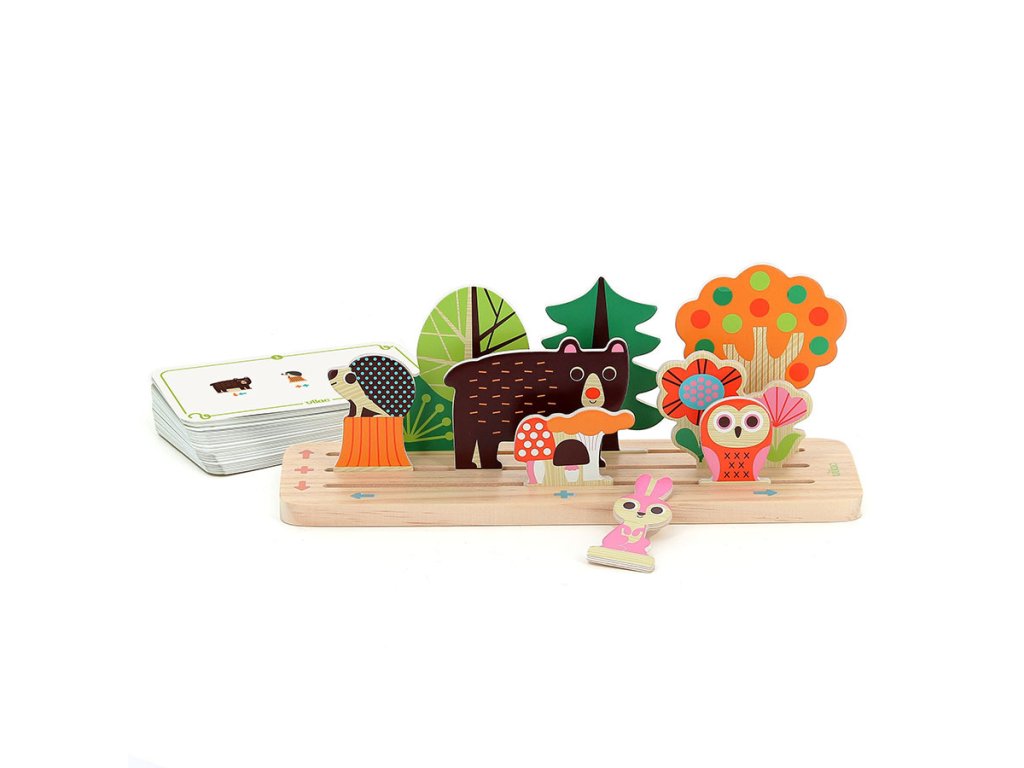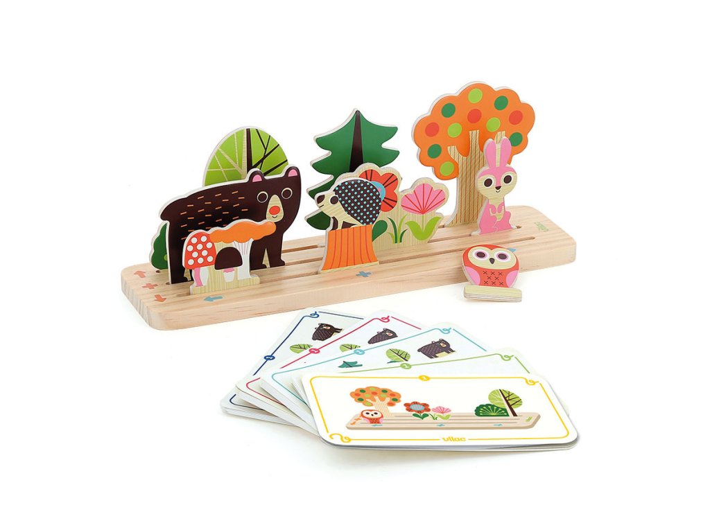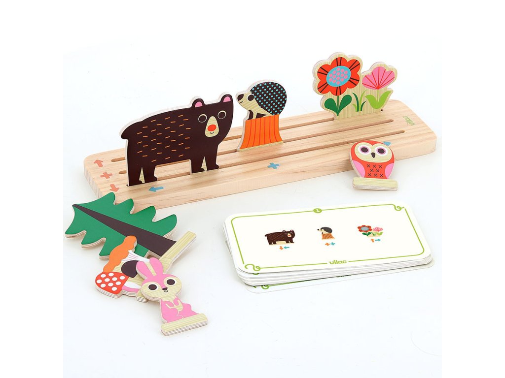 Skládačka pro chytré hlavičky – zábavné stavění podle zadání! Logická dřevěná skládačka s krásnými ilustracemi Ingely P. Arrhenius hravou formou rozvíjí prostorovou představivost, logické myšlení a jemnou motoriku dětí. Pomocí dřevěných dílků a hracích karet s různou obtížností se děti učí vnímat vztahy mezi předměty – vlevo, vpravo, nahoře, dole, uprostřed, a správně je umístit podle zadání. Dítě pracuje samostatně nebo s pomocí rodiče, skládá podle nápovědy z karet a rozvíjí tak koncentraci, přesnost i trpělivost.