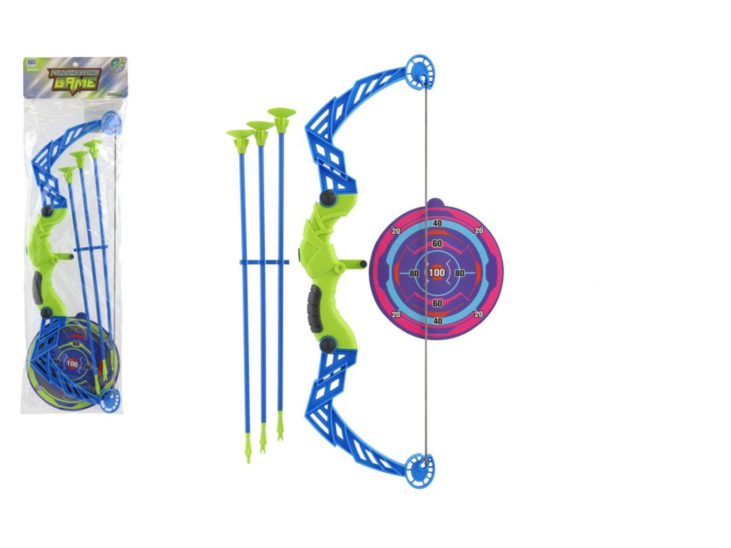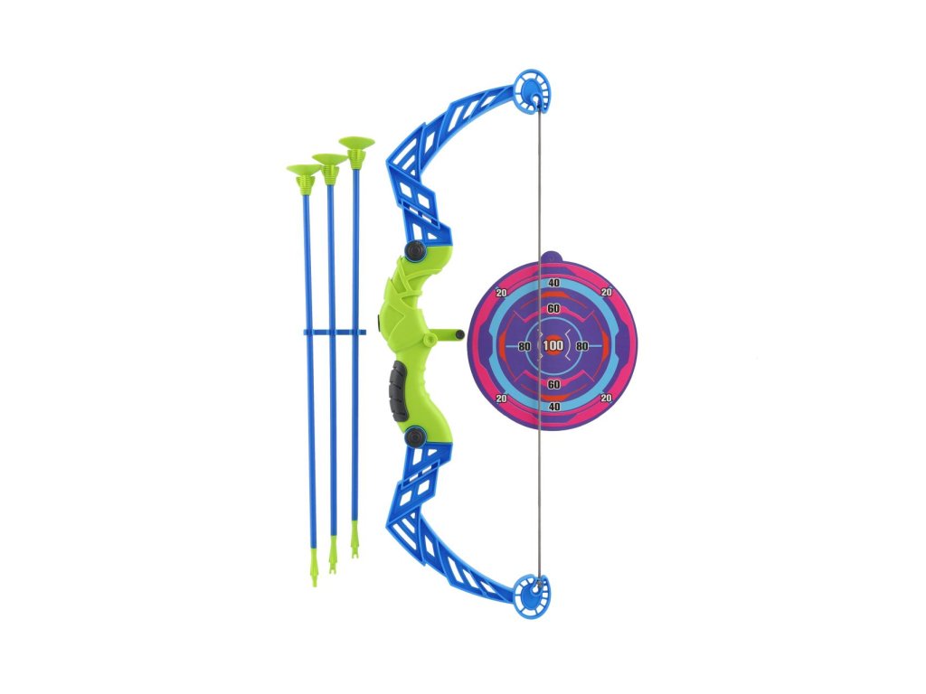 Zaměřte a vystřelte šíp na terč. Šípy mají na svém konci přísavky. Tyto přísavky slouží k přichycení šípu na cílovou plochu nebo jiný hladký povrch. Balení obsahuje luk, 3 šípy a terč.Rozměr luku: 57 cm