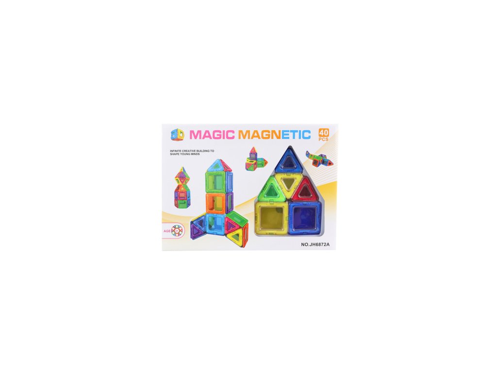 Magnetická stavebnice. Balení obsahuje 40 dílků k sestavování. Materiál plast. Baleno v krabici. Rozměry balení cca 34x24x5 cm. Věk 3+Doplňkové parametry
