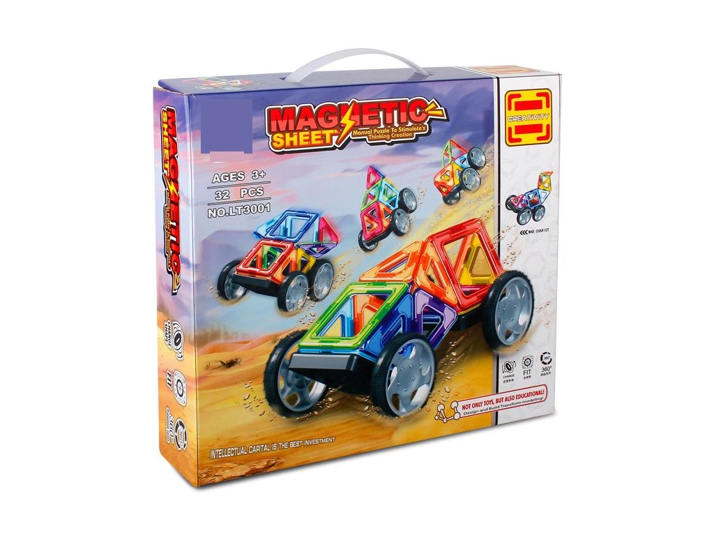 Magnetická stavebnice pro malé děti. Jednoduché sestavení, nekonečné množství kombinací. Má pozitivní vliv na jemnou motoriku a abstraktně vizuální představivost dítěte. Věk: 3+ Počet dílků: 32Doplňkové parametry