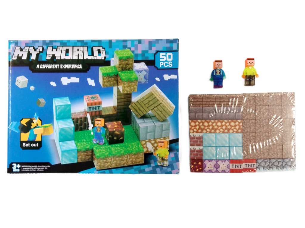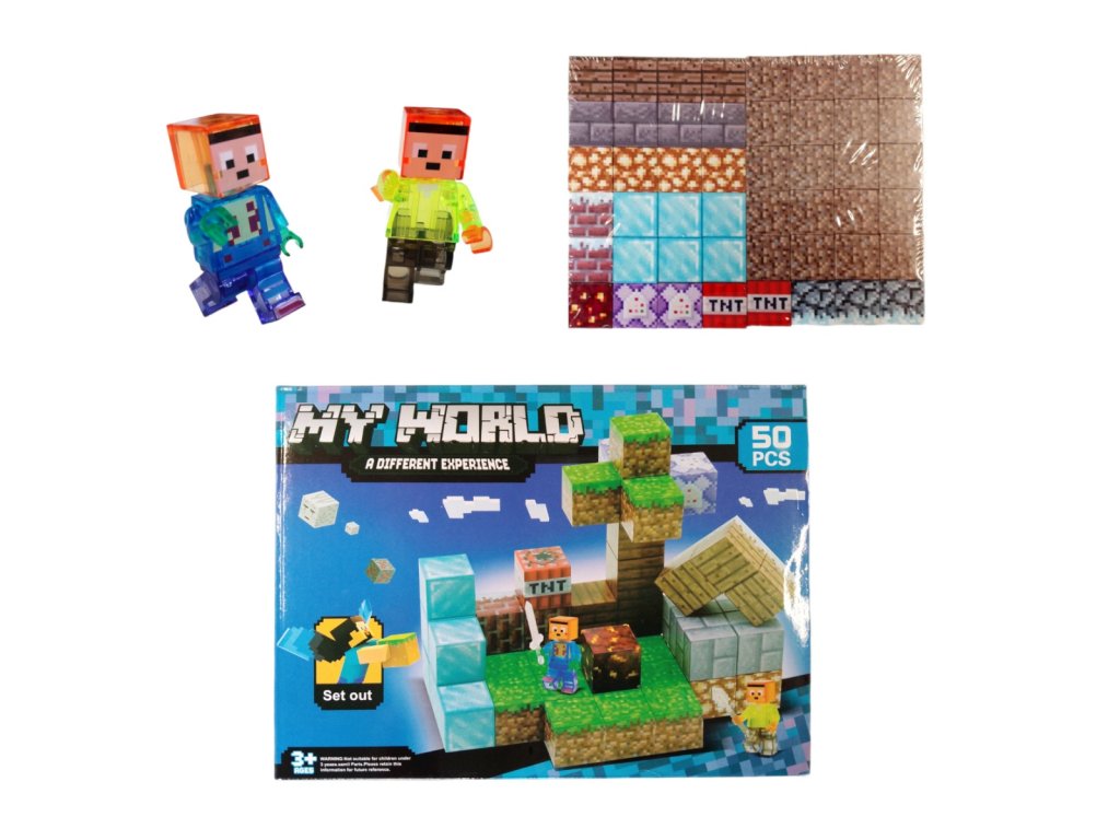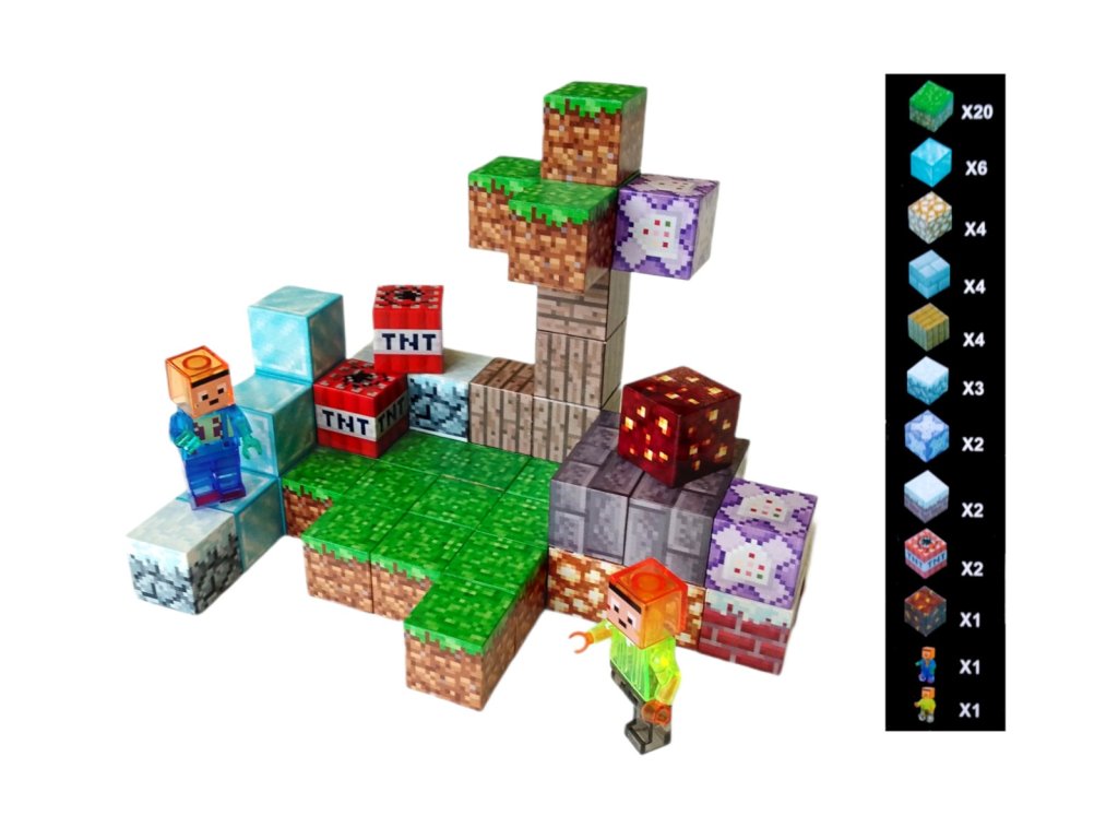 Stavebnice obsahuje 50 magnetických dílků, které se snadno spojují díky vestavěným magnetům. Součástí balení jsou dvě figurky postav ve stylu pixel art a různé stavební bloky jako ledové kostky, trávníkové bloky, TNT a další texturované kostky, které věrně kopírují vzhled z populární hry.