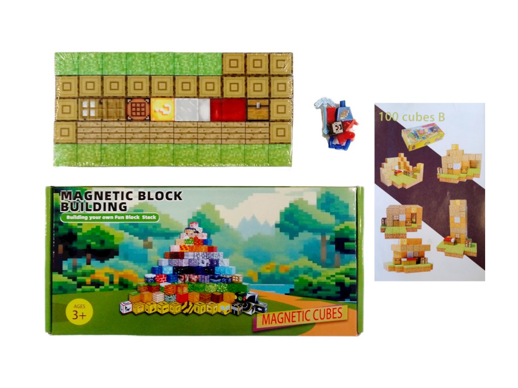 100 ks magnetické kostky – lucky block, okno, postel, dřevo, tráva, truhla, crafting table, surprice...