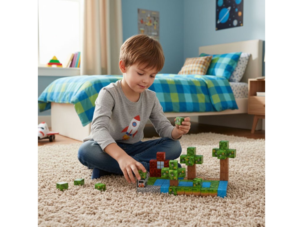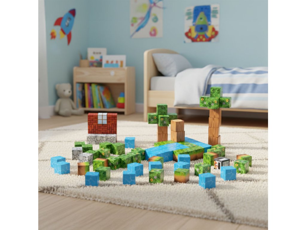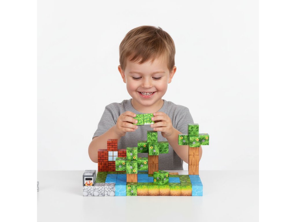 Spojování kostek probíhá díky vestavěným magnetům, které zajišťují, že se díly rychle a spolehlivě přitahují. Jde o snadnou a intuitivní formu hry, která dětem přináší radost a umožňuje plně se soustředit na kreativní tvoření.