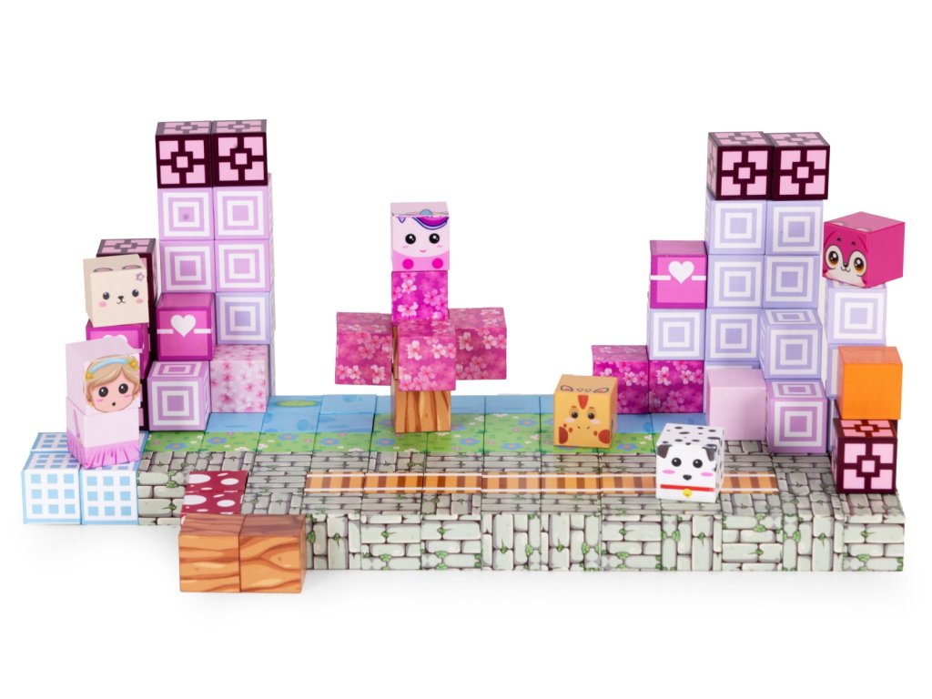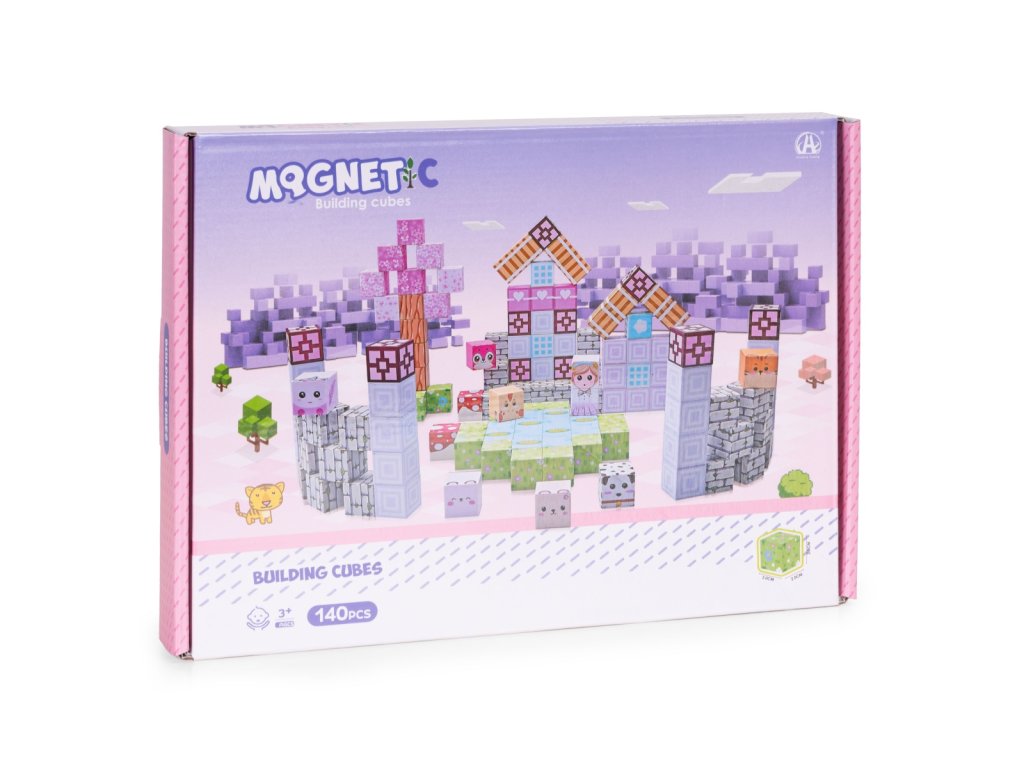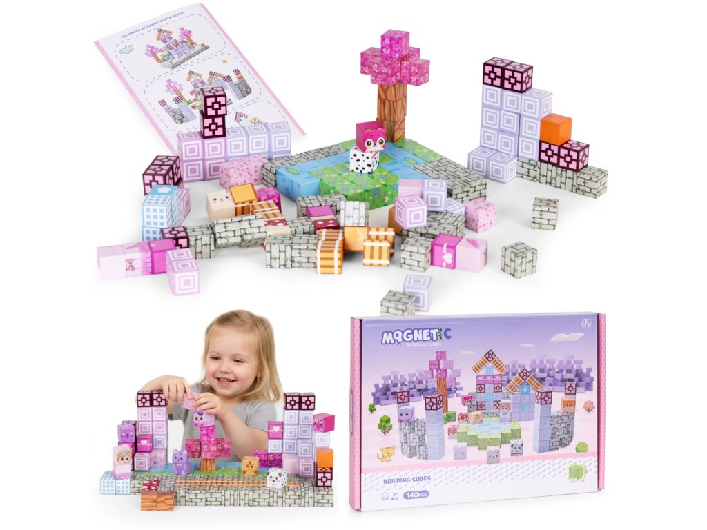 Magnetické stavební kostky pro děti - krychle, 140 dílků, růžové