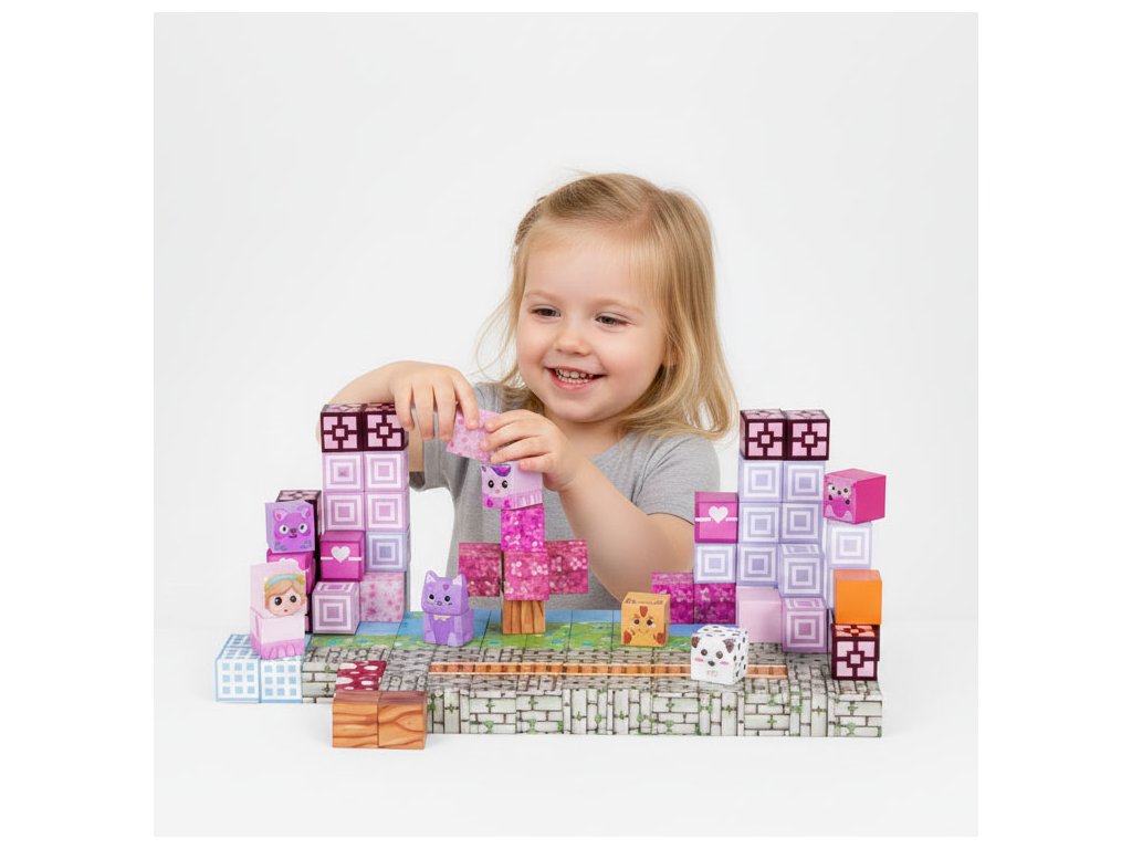 Spojování dílků zajišťují vestavěné magnety, díky nimž se kostičky rychle a samovolně přitahují. Jde o snadnou a intuitivní formu hry, která dětem přináší radost a umožňuje plně se soustředit na kreativní tvoření.