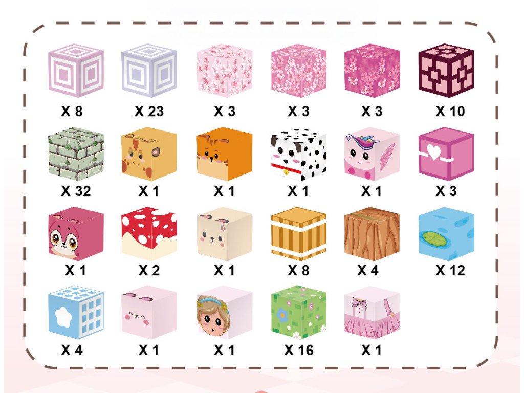Rozměr kostiček: 2×2×2 cm.