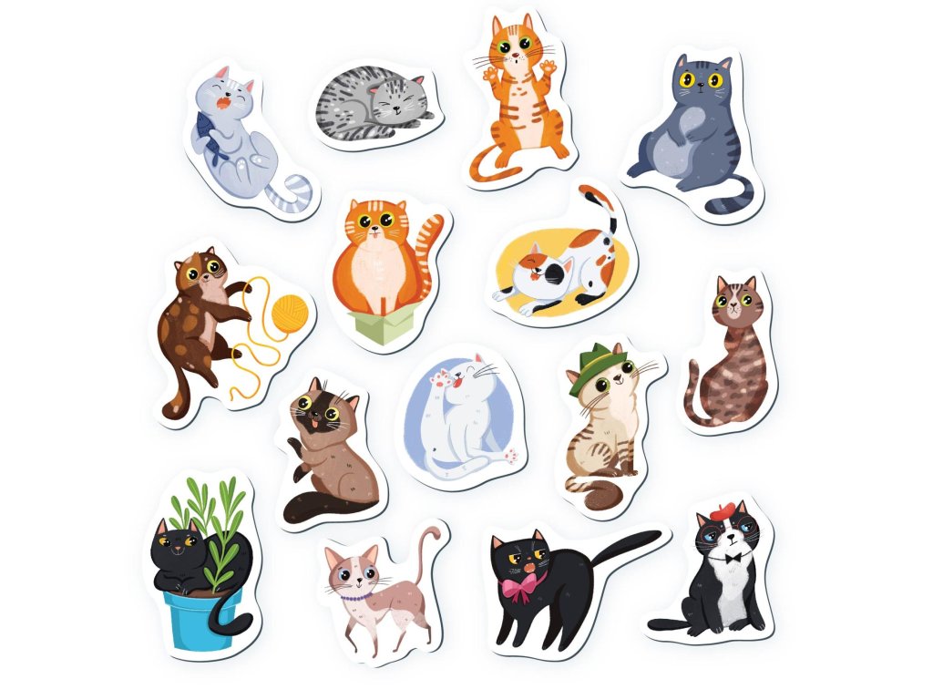 Objevte kouzlo kočičího světa s magnety Kočky! Sada obsahuje 15 krásně ilustrovaných magnetů, které představují různé kočičky. Ideální pro děti, které se rády učí o a zároveň rozvíjejí jemnou motoriku.Rozměr balení: 17 x 11 x 3 cm