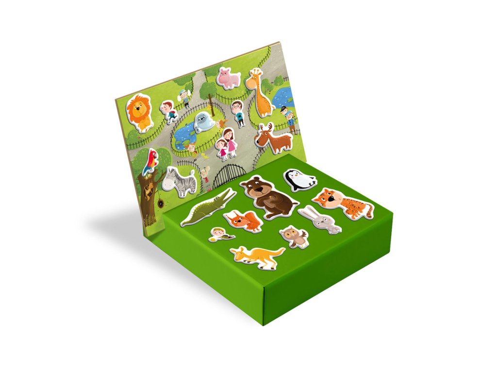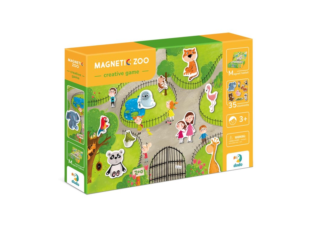 Tato sada magnetů s motivem zvířátek v zoo obsahuje poutavé obrázky, které budou inspirací pro nekonečné hodiny kreativní hry. Sada obsahuje magnetickou podložku z motivem zoologické zahrady.Balení obsahuje 35 kusů