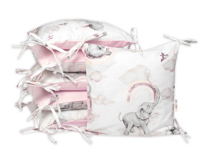 Bavlněný polštářkový mantinel Baby Nellys, Slon a duha, růžová/bílá