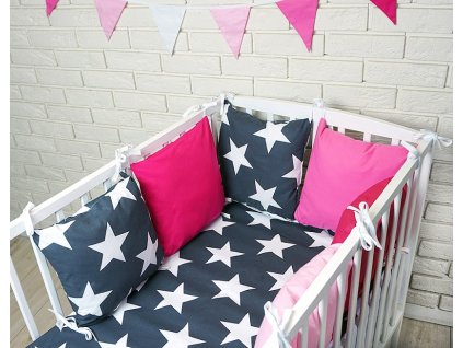 Baby Nellys Polštářkový mantinel s povlečením - hvězdy, černá/malinová