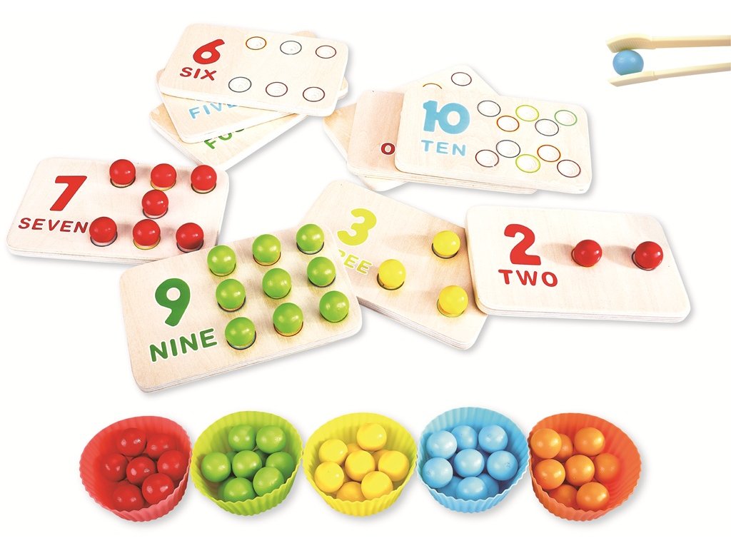Velká sada pro malé i větší počtáře obsahuje 97 dílů a nabízí zábavný způsob, jak se učit čísla a jednoduché počítání. Je inspirována Montessori principy, které podporují přirozené učení hrou. Pomocí přiložených kleští děti přemisťují barevné kuličky a přiřazují je k příslušným číslům, což rozvíjí jemnou motoriku a napomáhá k rozpoznávání barev. Na kartičkách jsou nejen příklady, ale také jednoduché říkanky s čísly, které zpestří učení. Texty říkanek jsou v angličtině, takže zároveň hravou formou rozšíří anglickou slovní zásobu. Díky jednoduchému provedení je sada vhodná i pro začátečníky, kteří se s čísly teprve seznamují.
