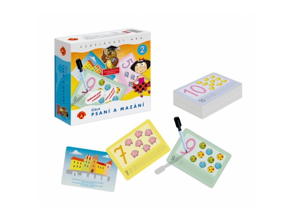 Čísla Psaní a mazání 2 didaktická společenská hra v krabici 19x18x5cm