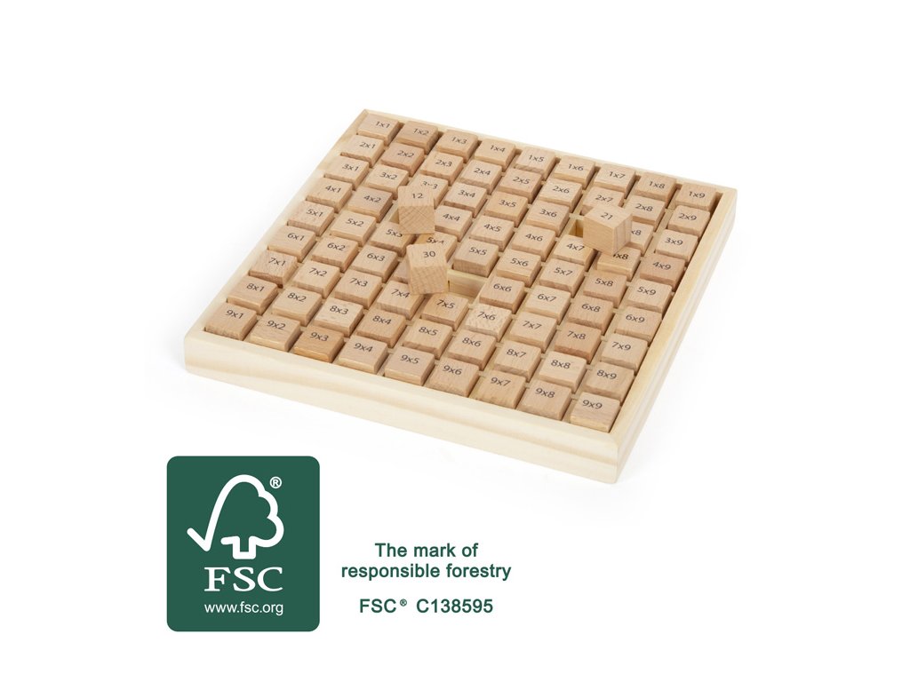 81 dřevěných kostiček v dřevěném rámu z masivního dřeva. Na kostičkách jsou jak příklady tak výsledky, ale i 4 volná místa pro další zápisy matematických rébusů. Nádherný způsob, jak děti učit při hře. Hlavní vlastnosti: rozvíjí logiku podporuje procvičování malé násobilky vyrobeno ze 100% FSC dřeva Značka a certifikát FSC® (Forest Stewardship Council) zaručuje, že dřevo, ze kterého byl produkt vyroben, nebylo vytěženo nelegálně a pochází z lesů obhospodařovaných šetrným či přírodě blízkým způsobem, ve kterém jsou dodržovány přísné environmentální a sociální požadavky. Značka FSC® na výrobku znamená, že svým nákupem pomáháte chránit lesy a podporujete šetrné, odpovědné či přírodě blízké hospodaření, díky kterému jsou naše lesy stabilnější, zdravější, mají přirozenou druhovou skladbu a lépe odolávají negativním následkům klimatických změn.Doplňkové parametry